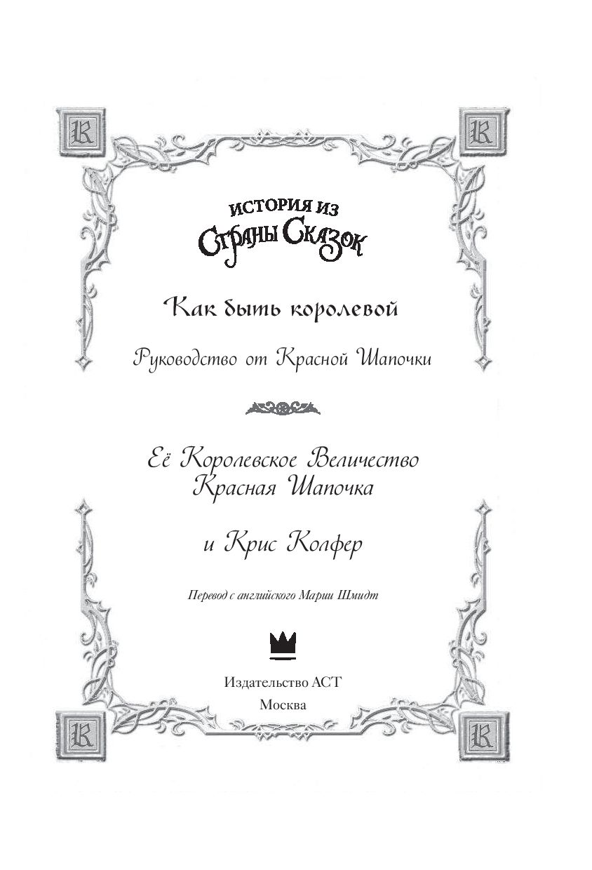 Крис Колфер, автор бестселлеров по версии The New York Times, представляет вашему вниманию историю о всеми любимой героине "Страны сказок" – Красной Шапочке. В своём руководстве "Как быть королевой" юная правительница рассуждает о политике, управлении страной, здоровье, любви и, конечно же, о том, каково это – быть королевской особой.