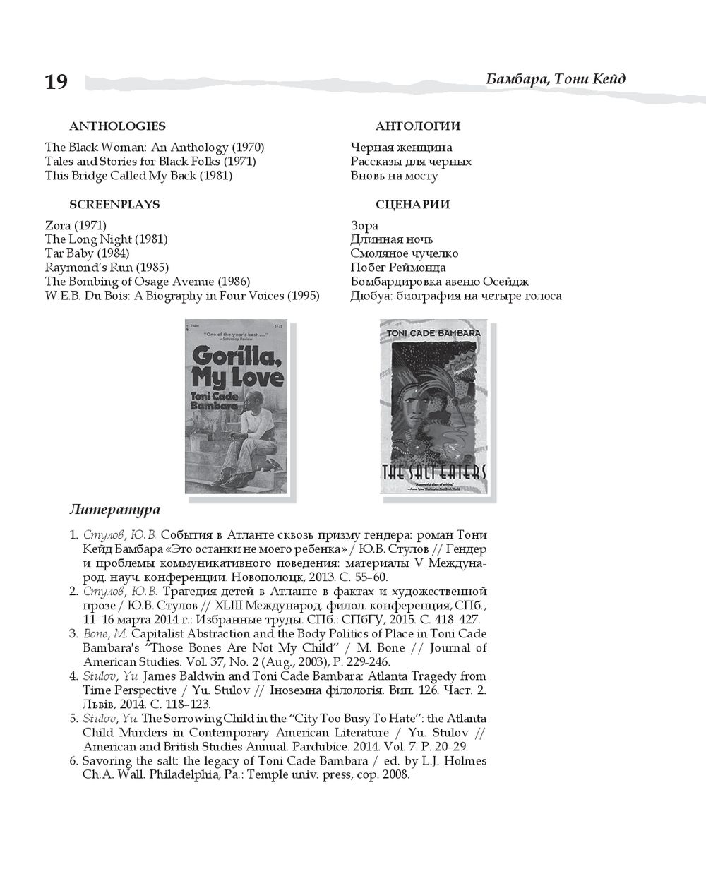 Содержит очерки о жизни и творчестве крупнейших писателей США, списки произведений с указанием года издания и их переводы на русский язык. Текст дополнен литературными иллюстрациями и фотографиями. Помещены списки основных критических работ по творчеству писателей, вышедших на русском, белорусском и английском языках. В конце книги дан алфавитный указатель фамилий на английском языке и перечень литературных иллюстраций.