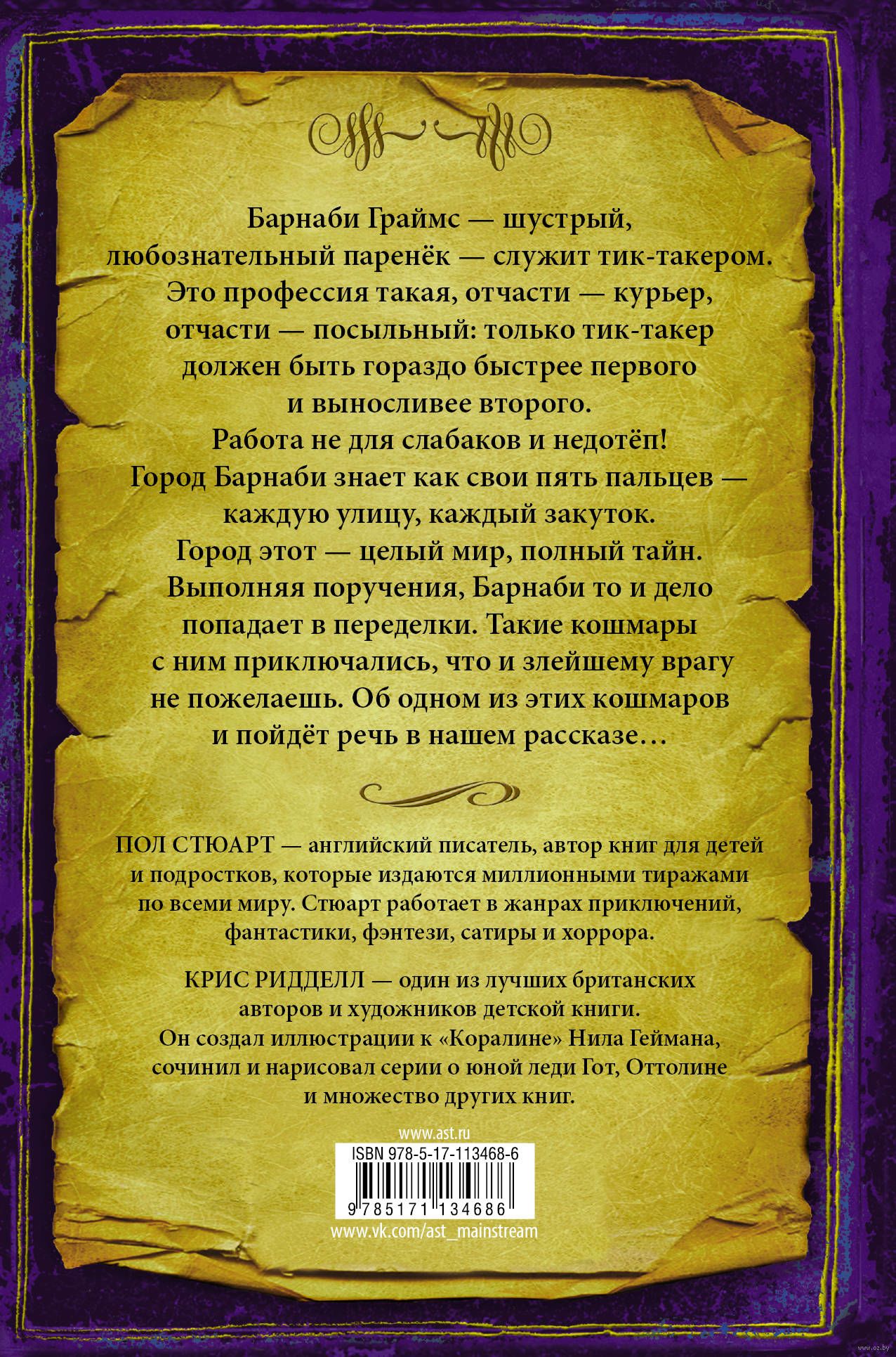 Барнаби Граймс – шустрый, любознательный паренёк – служит тик-такером. Это профессия такая, отчасти – курьер, отчасти – посыльный: только тик-такер должен быть гораздо быстрее первого и выносливее второго. Работа не для слабаков и недотёп! Город Барнаби знает, как свои пять пальцев – каждую улицу, каждый закуток. Город этот – целый мир, полный тайн. Выполняя поручения, Барнаби то и дело попадает в переделки. Такие кошмары с ним приключались, что и злейшему врагу не пожелаешь. Об одном из этих кошмаров и пойдёт речь в нашем рассказе...