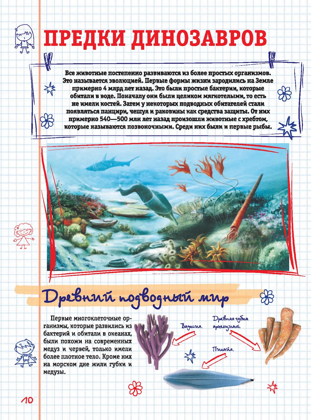 Как современным мальчикам и девочкам узнать всё о динозаврах, но при этом не утонуть в море информации? Нужен надёжный спасательный круг, например, как эта книга, составленная в виде конспекта-справочника. Откуда взялись эти гигантские ящеры? Они вымерли из-за падения астероида или нашлись и другие причины? Как учёные узнали, какими были динозавры, если людей тогда ещё не существовало? Что ел на обед тираннозавр? Как растил детёнышей трицератопс? Можно ли встретить динозавра в наши дни?