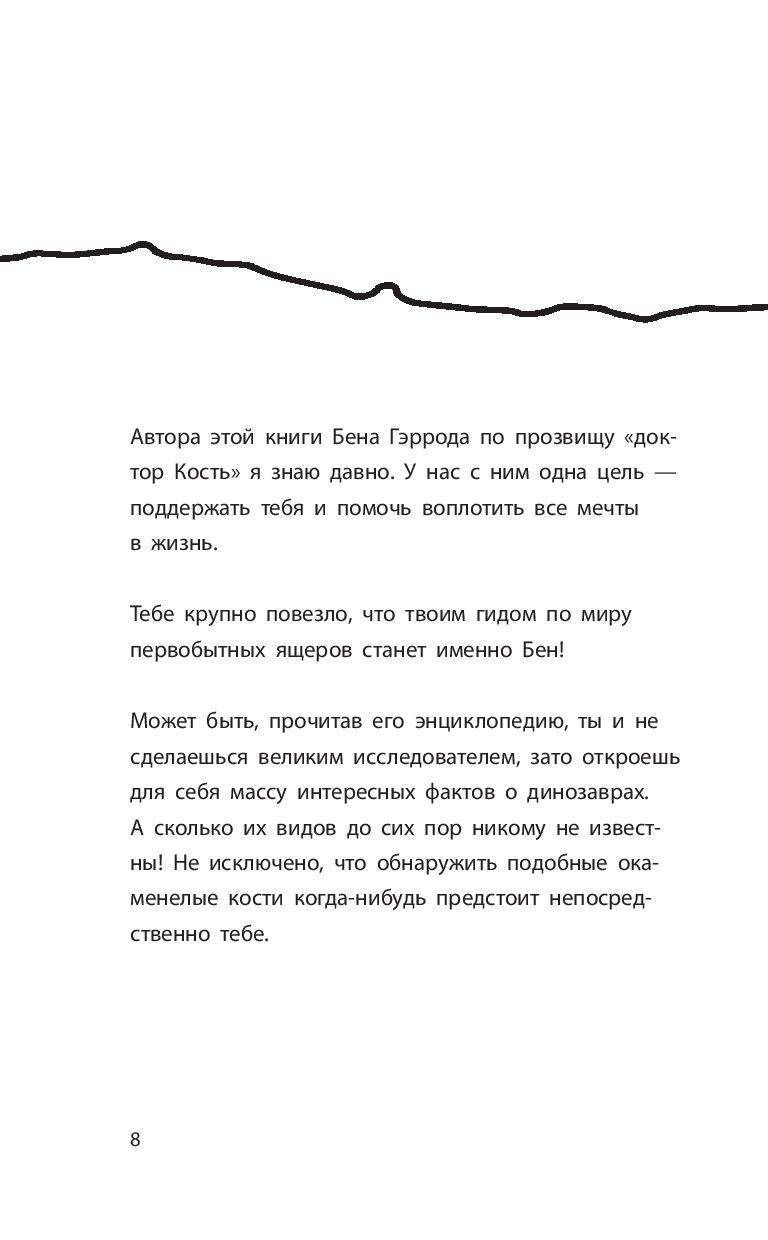 Эта книга расскажет абсолютно всё о самом загадочном хищном ящере древности – спинозавре! Умел ли он плавать? Правда ли, что этот динозавр поедал даже зубастых птеродактилей? Для чего служила гигантская спинная перепонка теропода, сделавшая его столь узнаваемым? Всё это и многое другое ребятам поведает британский учёный и путешественник Бен Гэррод по прозвищу "доктор Кость"! С ним скучать не придётся: вместо стандартного перечисления энциклопедических фактов читателей ждут комиксы с реконструкциями битв доисторических ящеров, взамен давно известных сведений – удивительные открытия 2017-го и 2018-го годов. А в конце книги находится практикум юного палеонтолога, рассказывающий, как грамотно описывать найденные ископаемые.