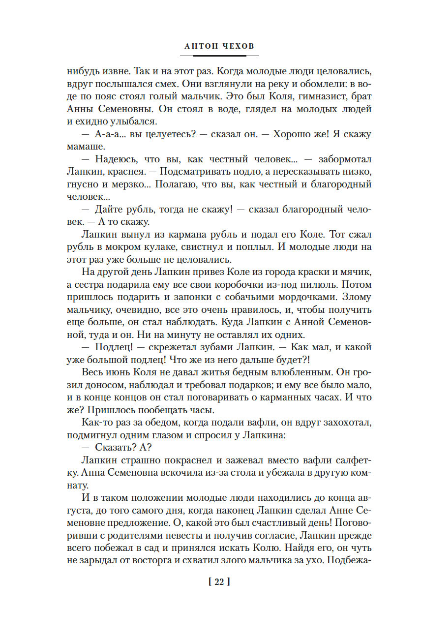 Замечательный стилист, тонкий психолог, мастер подтекста, Антон Павлович Чехов оказал огромное влияние на развитие мировой литературы. Его всегда интересовали самые обычные люди в повседневных делах и заботах, он рассказывал об их жизни, мечтах, надеждах на будущее без пророчества и морализаторства, предоставляя своим читателям право самостоятельно делать выводы. Рассказы и пьесы, написанные в последней четверти XIX века, по-прежнему вызывают интерес во всем мире, а прозаики и драматурги признают, что именно Чехов открыл перед ними невиданные возможности искусства слова.
