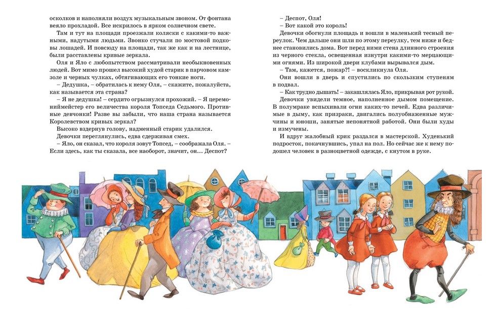 Добрая, умная и необычайно увлекательная сказочная повесть Виталия Губарева "Королевство кривых зеркал" – одна из самых любимых детских книг в нашей стране, давно ставшая классикой. В ней пятиклассница Оля волшебным образом попадает в зазеркалье, где всё наоборот. Чтобы вернуться домой, ей придется пройти множество испытаний. И это не просто испытания – это проверка на характер и умение дружить. Прочитав эту книгу, каждый поймет: чтобы узнать, кто ты есть на самом деле, стоит посмотреть на себя со стороны.