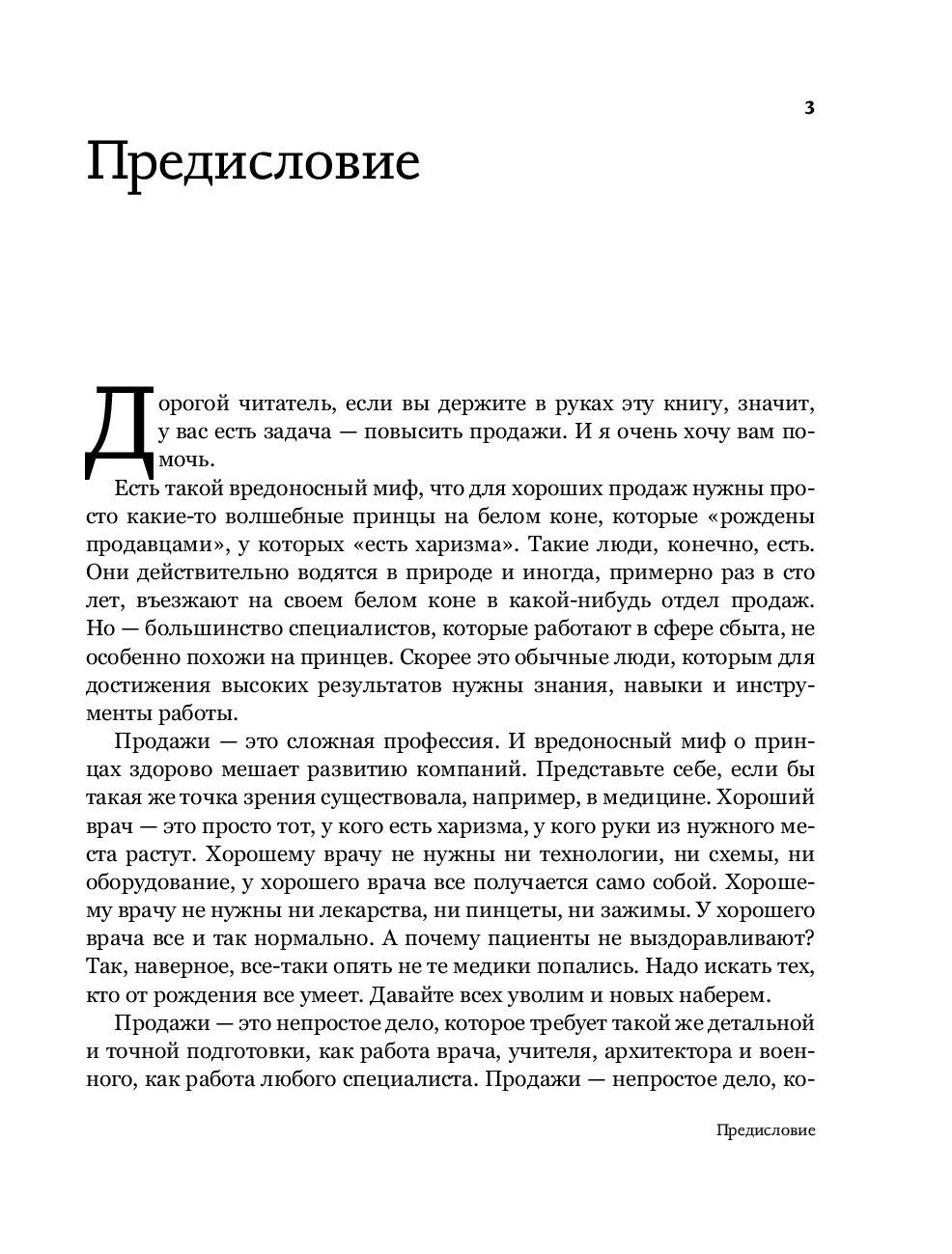 Описанные в книге подходы, методы и технологии являются концентрированным опытом множества проектов из различных отраслей. Поэтому вы, дорогой читатель, смело можете использовать данные подходы для усиления своих продаж. Скрипты – это самый важный инструмент работы с клиентом, они делают счастливыми сразу трех участников рынка: покупателей, продавцов и руководителей. За счет использования грамотных речевых модулей покупатели лучше понимают ценность торгового предложения, за счет использования эффективных технологий менеджеры больше продают, а за счет точно настроенных инструментов руководители быстрее достигают поставленных целей.