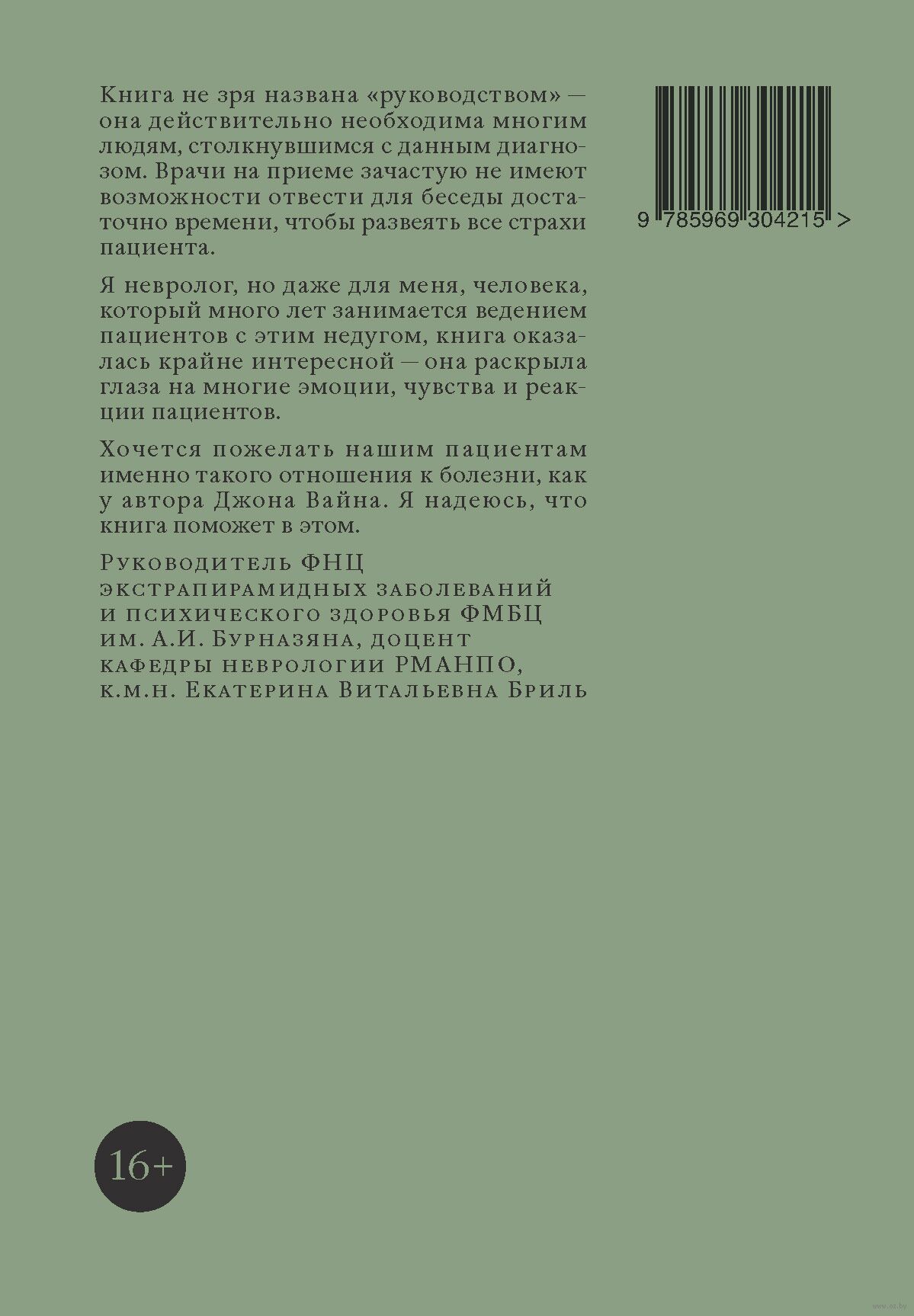 Представленное руководство примечательно тем, что написано человеком, который двенадцать лет живет с диагнозом "болезнь Паркинсона" и отлично знает, какого рода информация необходима страдающим от этого заболевания и их близким.