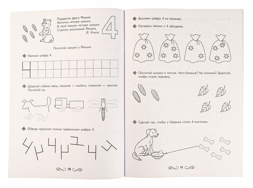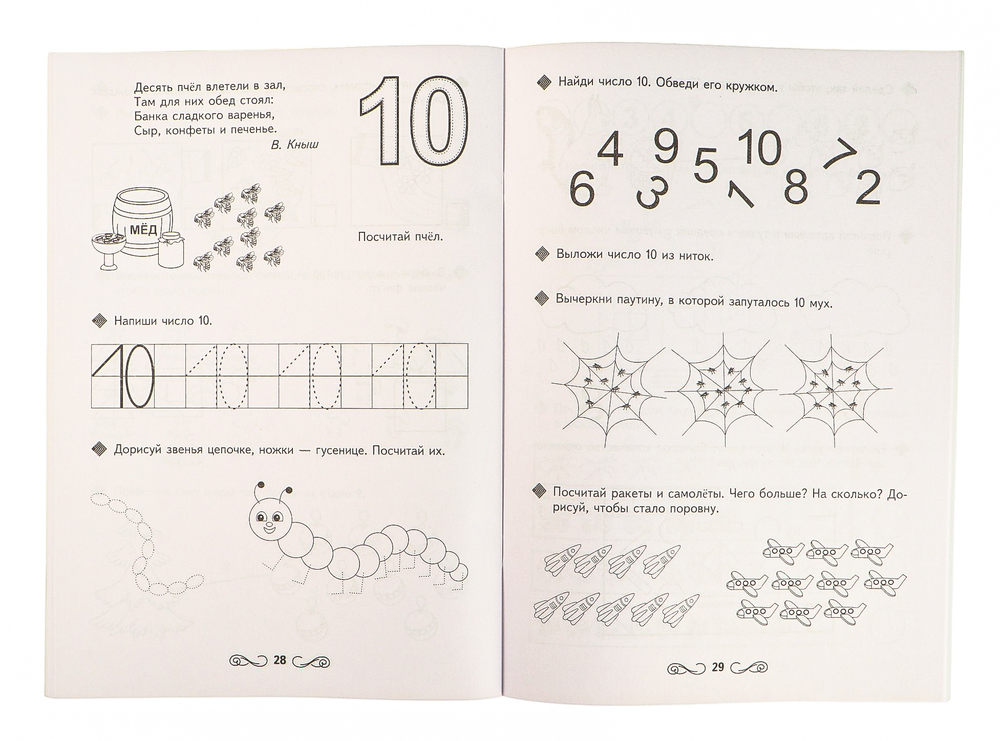Пособие направлено на формирование у ребенка дошкольного возраста представлений о последовательности чисел в числовом ряду, графическом образе цифр, счете в пределах 10-ти, а также на формирование у ребенка графических умений, навыков письма.