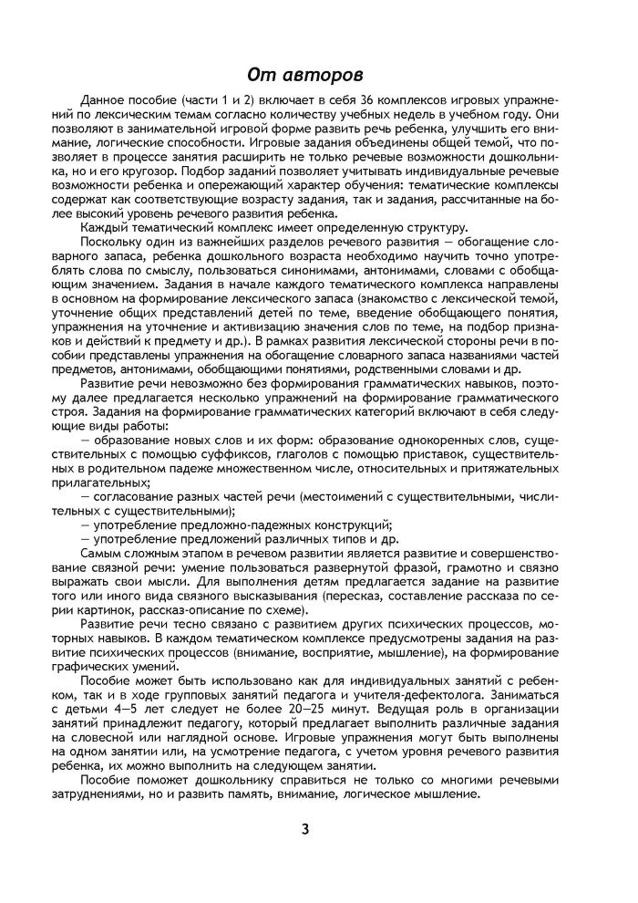 В рамках каждой темы предусмотрены упражнения на обогащение, активизацию лексики, на формирование словообразовательных умений, умений правильно согласовывать различные части речи в словосочетаниях и предложениях.