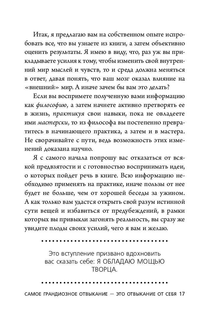Мозг – это важнейший орган каждого человека. Взаимосвязь мышления, мозга и тела оказывает глубокое влияние на жизнь человека, которое многие недооценивают. В своей книге доктор Джо Диспенза рассказывает о функциях и возможностях человеческого мозга и о перепрограммировании мышления с помощью научно обоснованных нейрофизиологических методик, основанных на простой, но могущественной истине: наше будущее зависит от наших сегодняшних мыслей. Данное пособие содержит ценные практические указания по развитию мозга, позволяющие читателю совершить жизнеутверждающие перемены в теле, разуме, судьбе, взаимоотношениях.