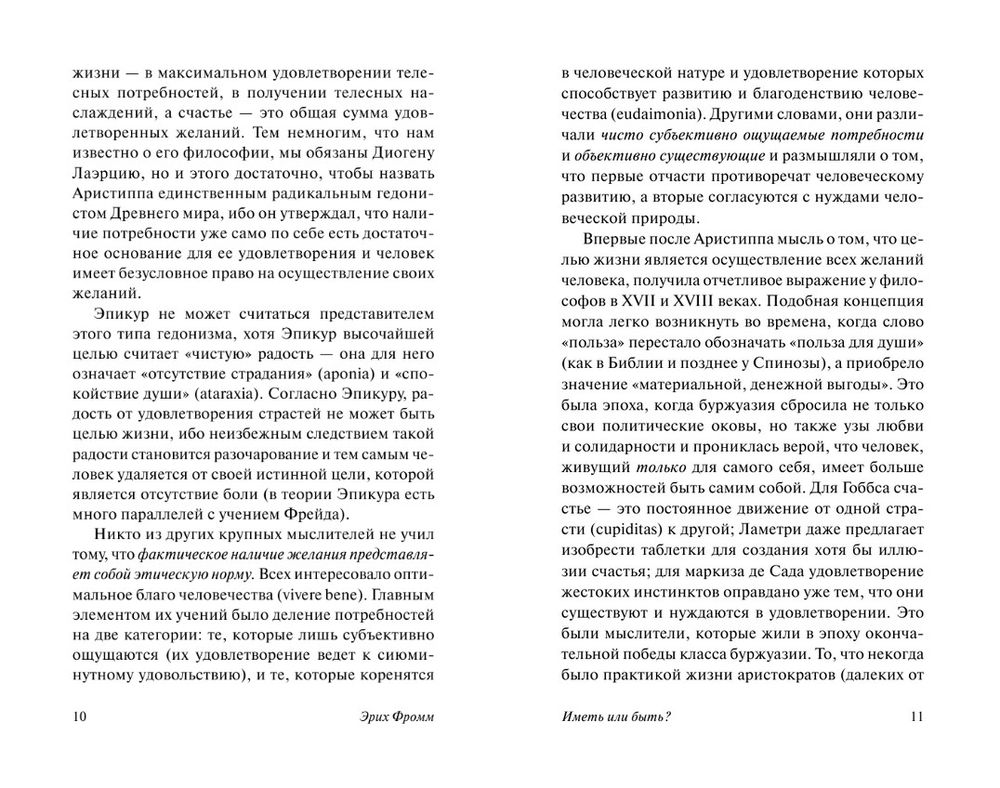 В своей знаменитой работе "Иметь или быть?" Эрих Фромм наглядно демонстрирует, к чему приводят отношения, сформированные по принципу "Ты – мне, я – тебе", и пытается ответить на вопрос, который в конечном итоге встает перед каждым: что все-таки важнее – обладание предметами материальной культуры или истинное, осмысленное бытие, когда человек по-настоящему проживает каждое мгновение своей жизни, осознавая его и наслаждаясь им во всей его полноте?