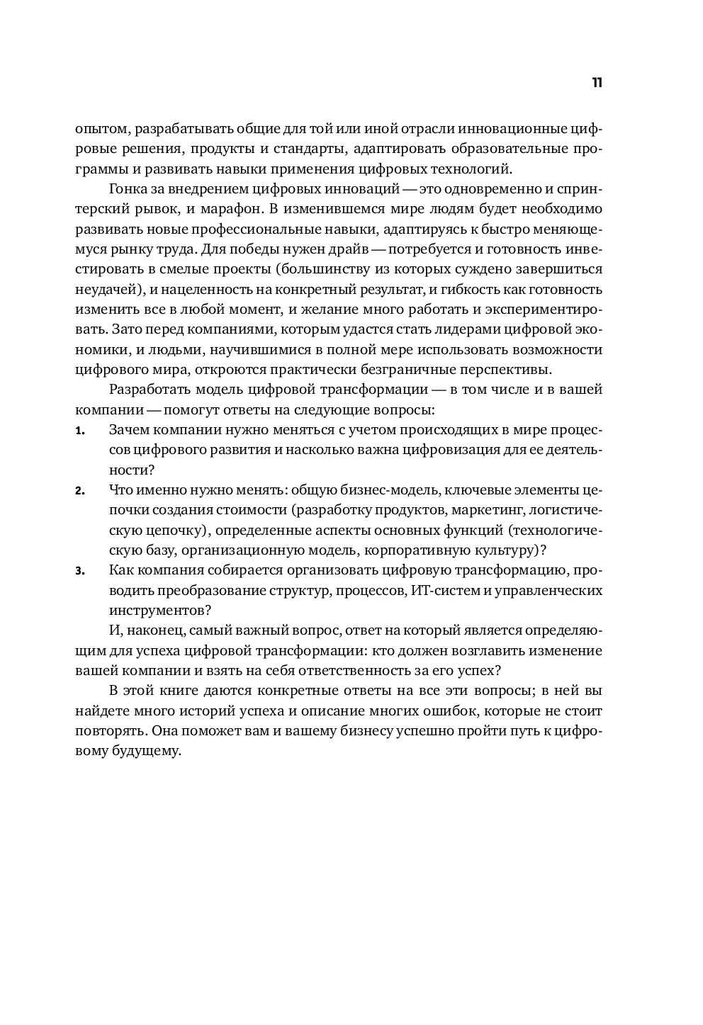 Опираясь на многочисленные исследования и опыт известных международных и российских компаний, они объясняют, почему изменения нужны даже там, где сейчас и так все хорошо, что именно в действующих стратегиях требует пересмотра и, наконец, как грамотно и эффективно провести цифровизацию своего бизнеса.