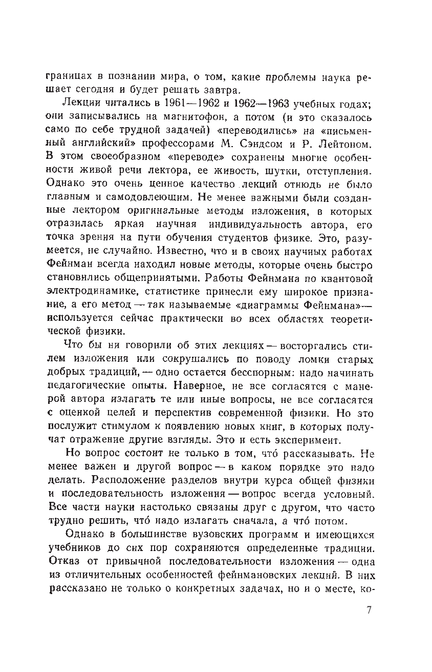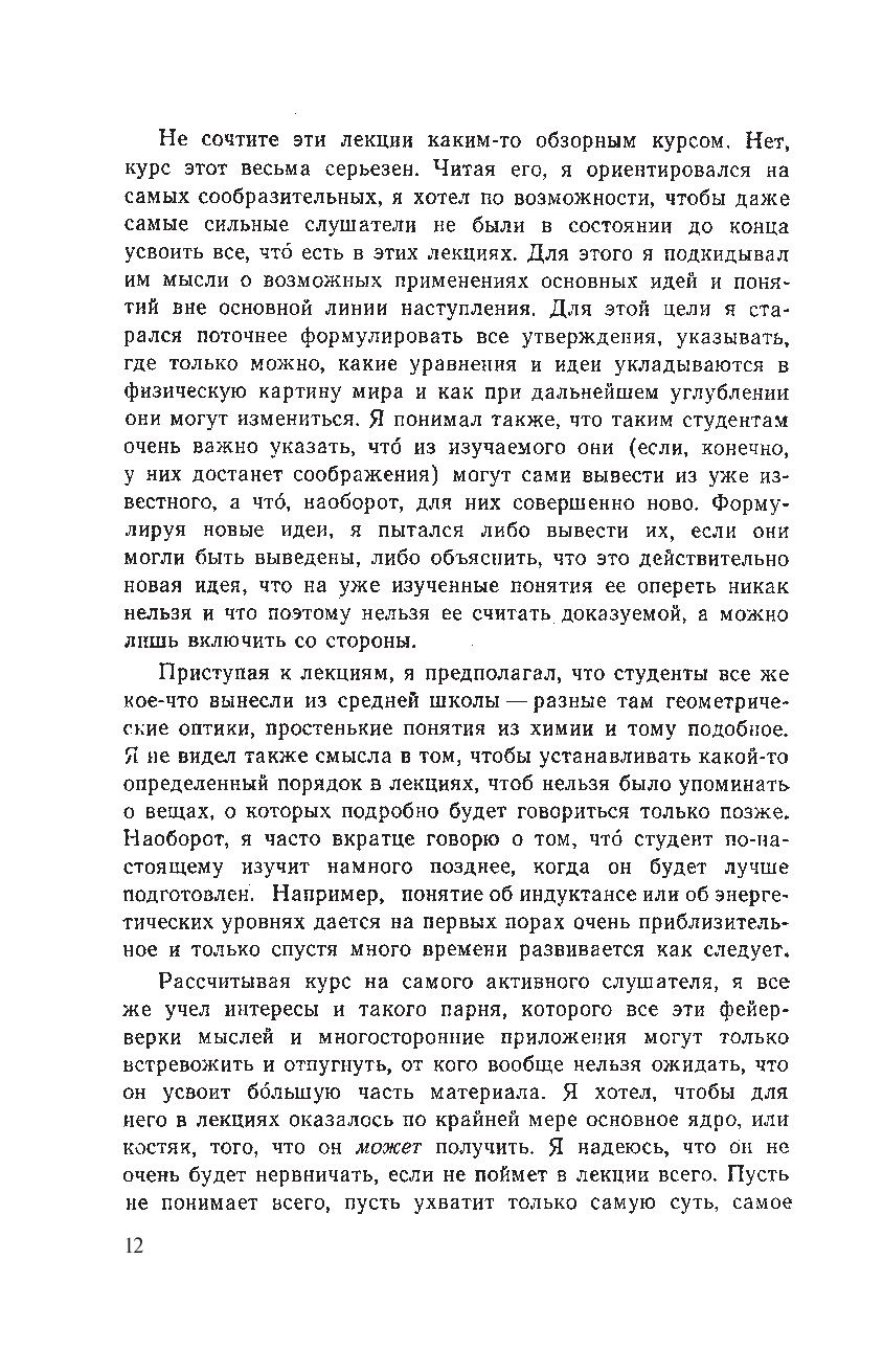 Искал курс лекций по физике, чтобы освежить знания после университета. Со своей задачей книга отлично справилась. Автор нетипично подходит к подаче материала, что идет только в плюс. Судя по всему, это просто перепечатка советского издания, но может это и к лучшему, потому что перевод отличный и со знанием дела, да и иллюстрации теплые и ламповые. Досаждают только редкие опечатки в формулах. Почти точно подготовиться к экзамену по такой книге не получится, потому что Фейнман порой заходит слишком издалека, и преподаватель, у которого советско-белорусский курс отпечатлся на подкорке, будет кринжевать от выкладок Фейнмана.