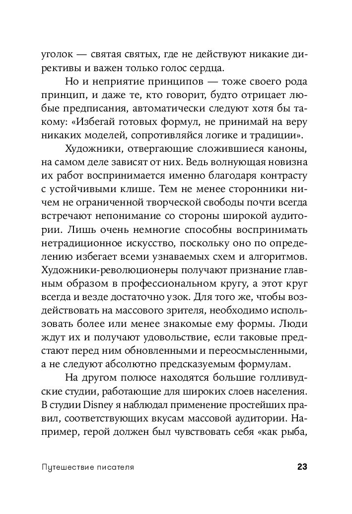 В "Путешествии писателя" автор приглашает читателя исследовать зыбкие границы между мифом и современным искусством рассказывания истории, предупреждая о трудностях и опасностях путешествия в недра собственной души, и вооружает полезными инструментами, которые в руках умелого мастера приобретают невероятную силу.