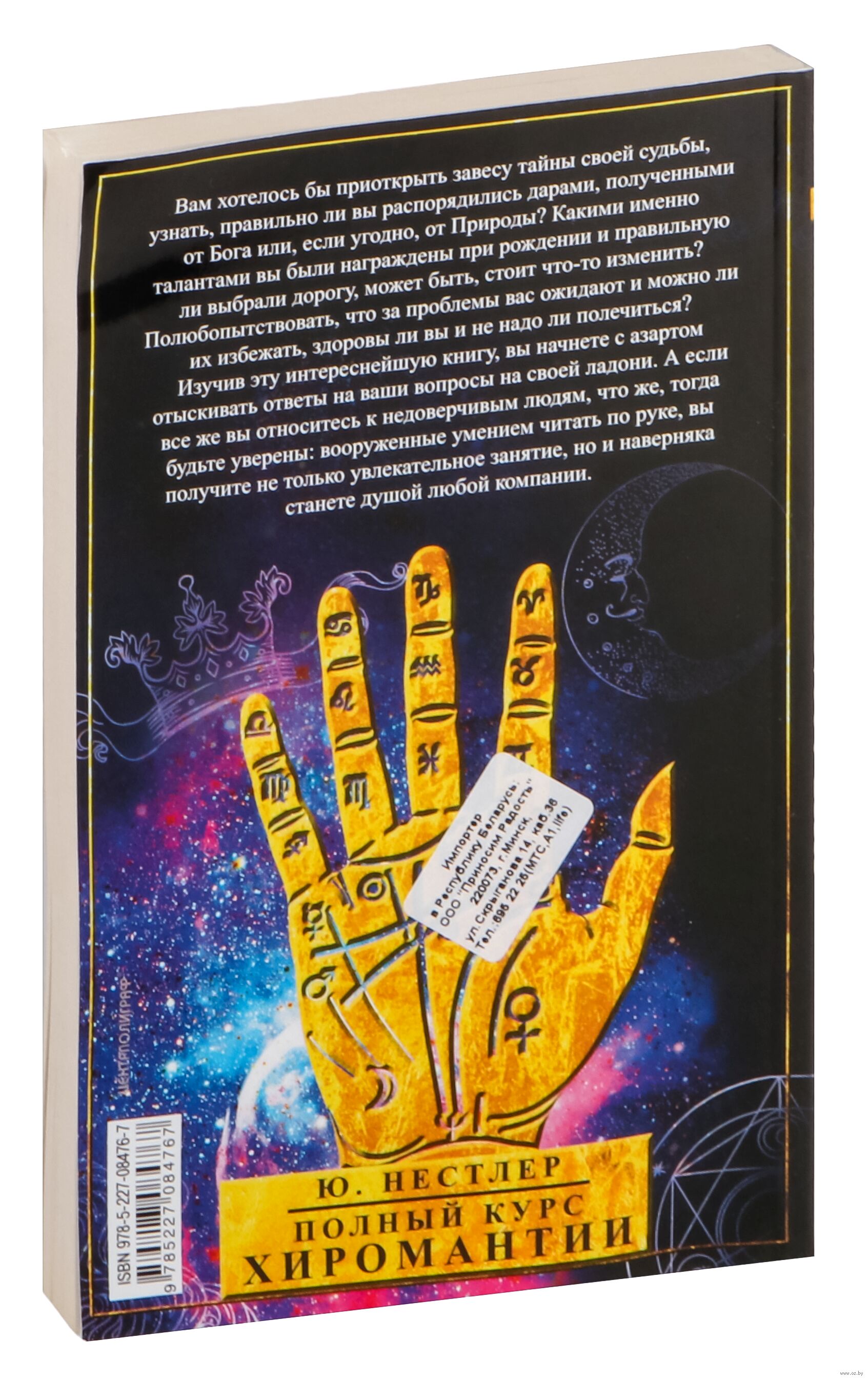 Книга профессора Юрия Нестлера представляет собой полный учебный курс хиромантии – одной из древнейших систем гадания об индивидуальных особенностях человека, чертах его характера, о пережитых им событиях, и его будущем по форме руки, линиям и холмам на ладони. Автор подробно объясняет значение формы руки и пальцев, объясняет смысл каждой линии и то, каким образом он меняется в сочетании с другими линиями.