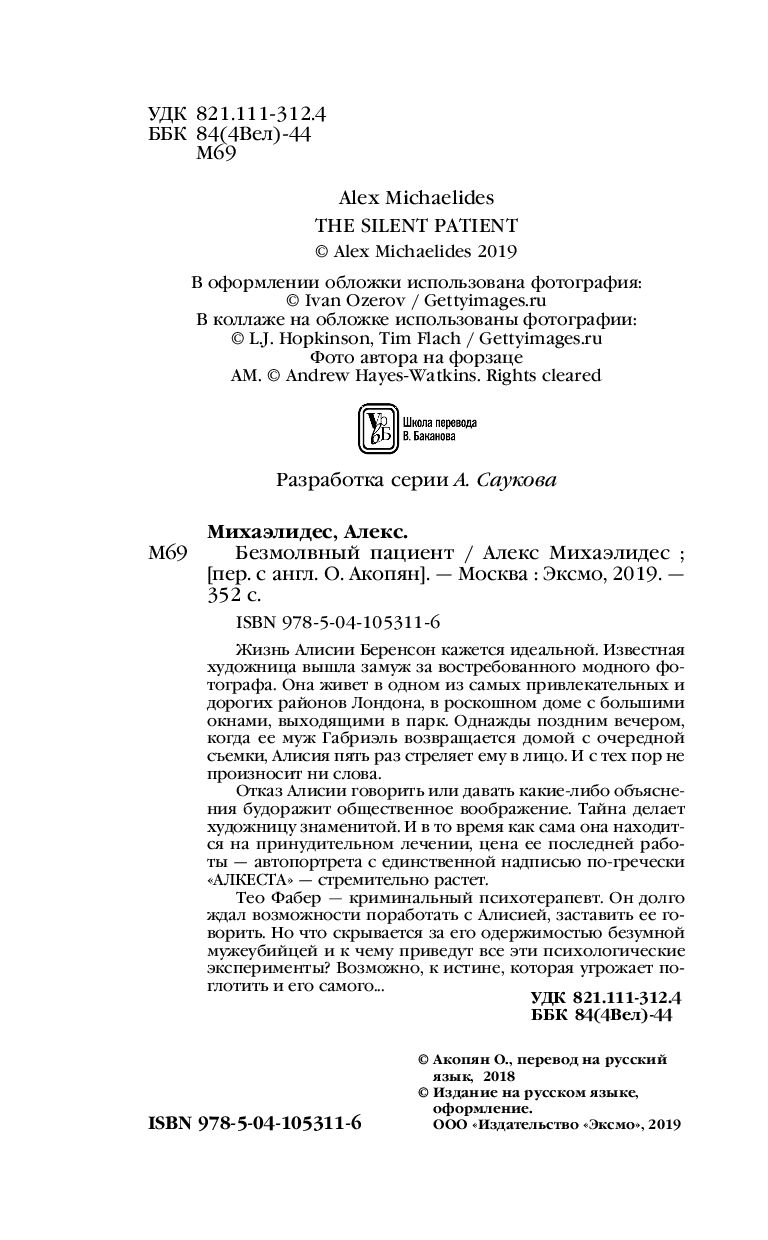 Тео Фабер – криминальный психотерапевт. Он долго ждал возможности поработать с Алисией, заставить ее говорить. Но что скрывается за его одержимостью безумной мужеубийцей, и к чему приведут все эти психологические эксперименты? Возможно, к истине, которая угрожает поглотить и его самого...