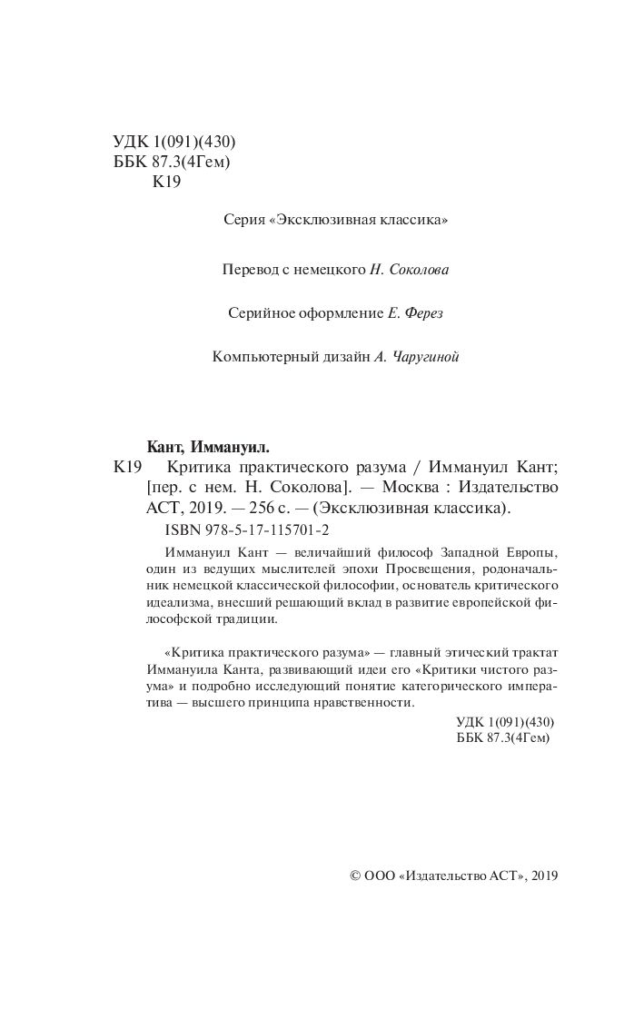 | Название в оригинале | Kritik der Praktischen Vernunft |