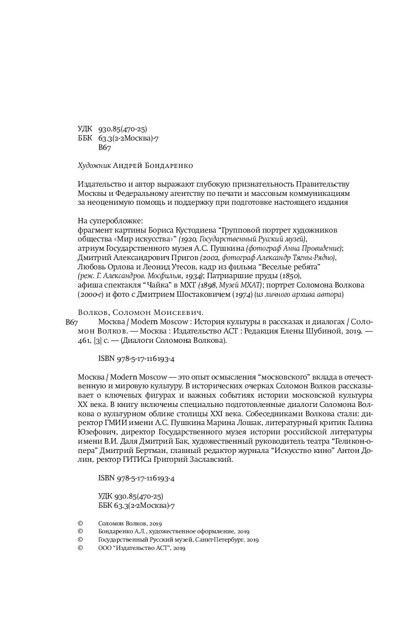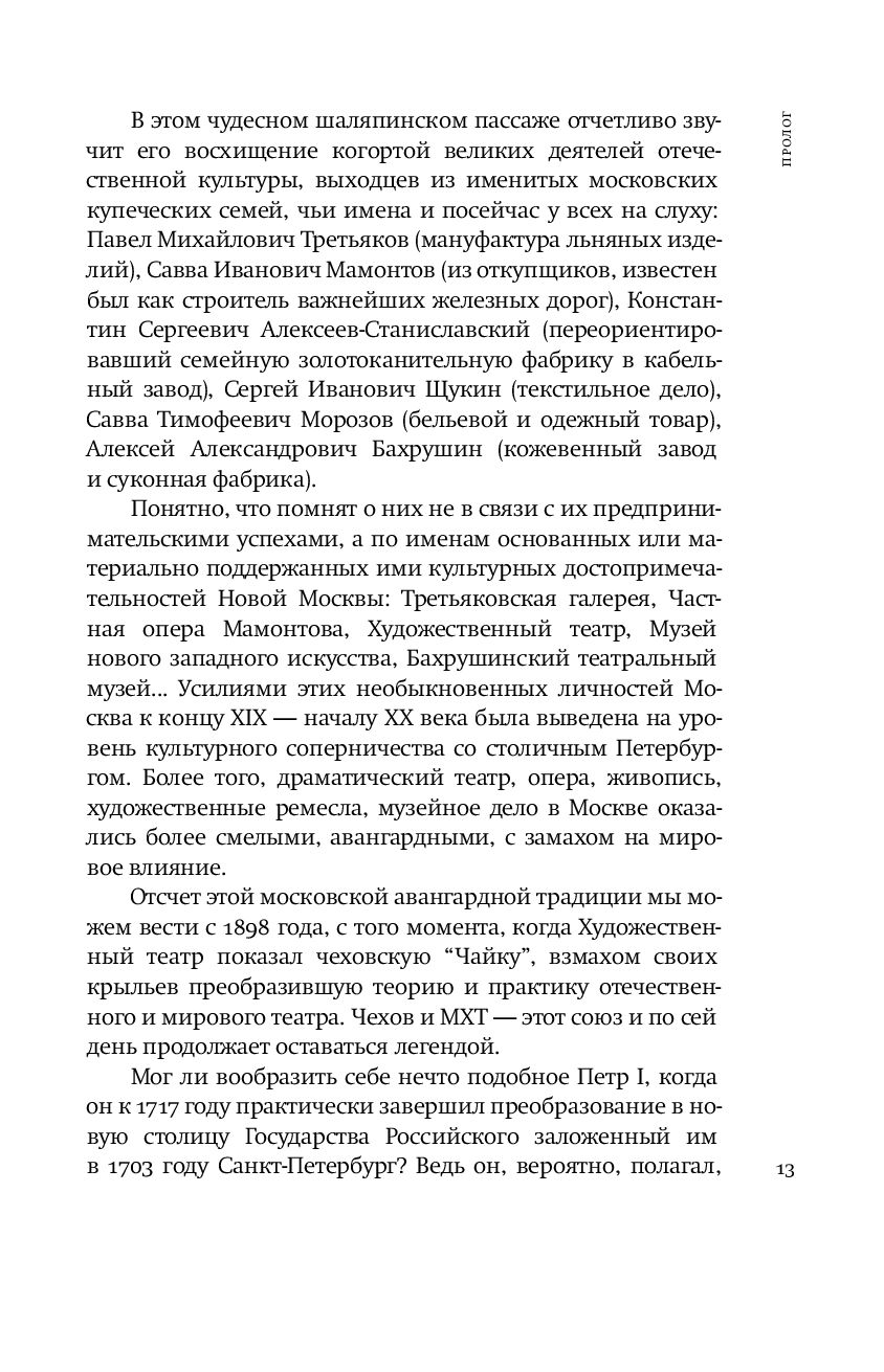Главная тема диалогов в этой книге – культурный облик столицы XXI века. Собеседниками Волкова стали: директор ГМИИ имени А. С. Пушкина Марина Лошак, литературный критик Галина Юзефович, директор Государственного музея истории российской литературы имени В. И. Даля Дмитрий Бак, художественный руководитель театра "Геликон-опера" Дмитрий Бертман, главный редактор журнала "Искусство кино" Антон Долин, ректор ГИТИСа Григорий Заславский.