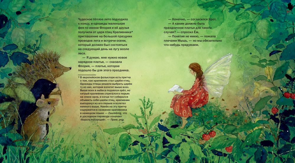Маленькая фея по имени Флория и её друзья, Крот, Мышь и Ёж, приглашены на праздник к королю птиц Крапивнику. Флория очень хочет пойти на праздник в новом нарядном платье, и друзья, желая помочь маленькой фее, делают для неё праздничный наряд из листьев, цветов и ягод, которые они принесли из леса.