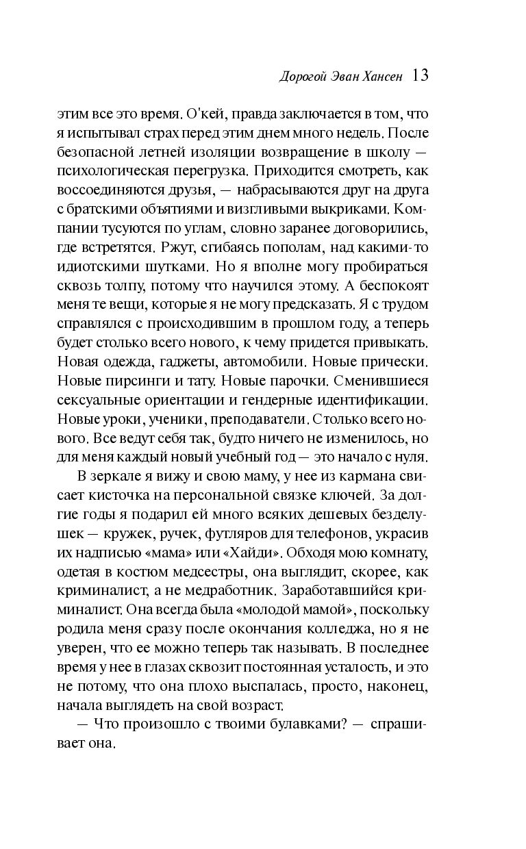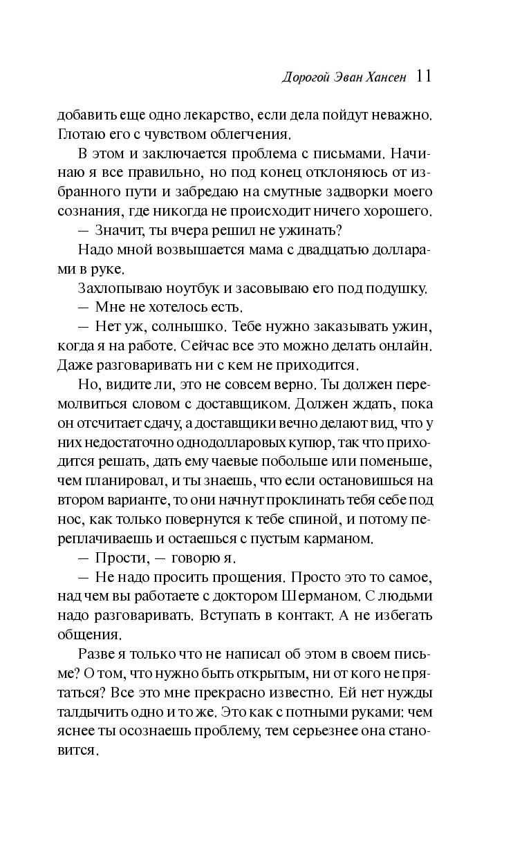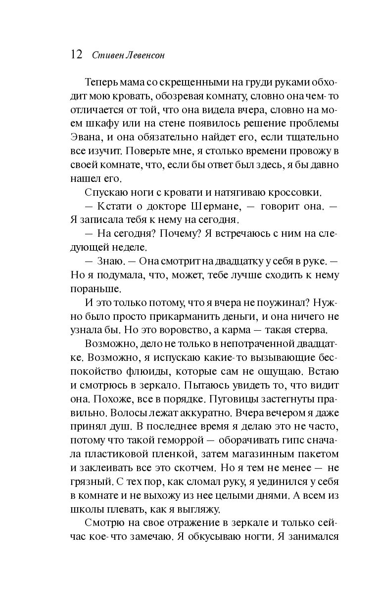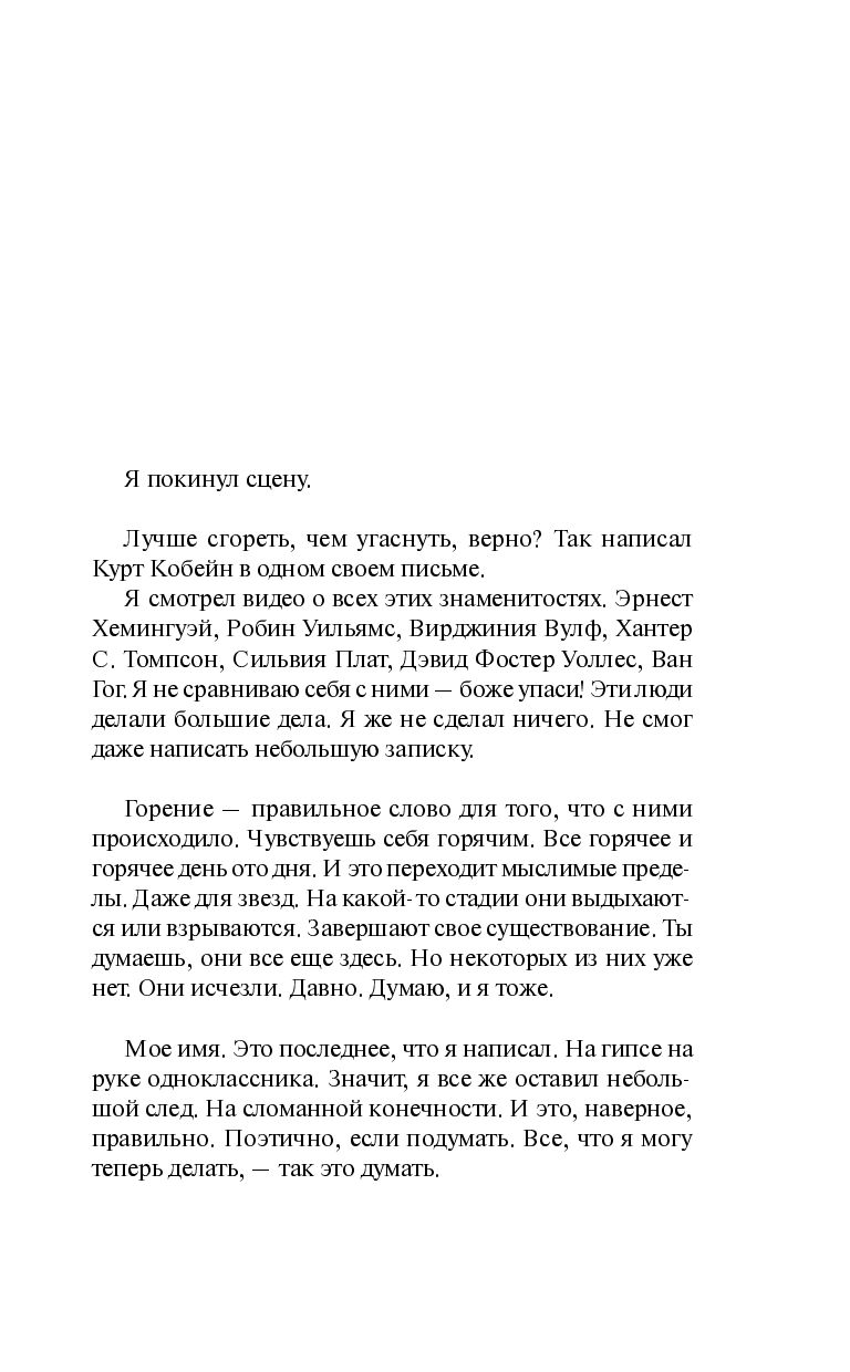 Если уже начинать читать эту книгу, то обязательно нужно дочитать до конца иначе ваше мнение будет основано только на том,что вы прочитали бесполезный бред. Данная книга освещает такие актуальные проблемы для нынешнего времени как психические расстройства,тема суицида и одиночества. Парень начинает плести паутину лжи, погружаясь всё глубже и глубже. Хотя в начале всё было достаточно невинно. Несмотря на то,что он зашёл слишком далеко, ему это помогло решить ряд проблем и помочь другим людям.