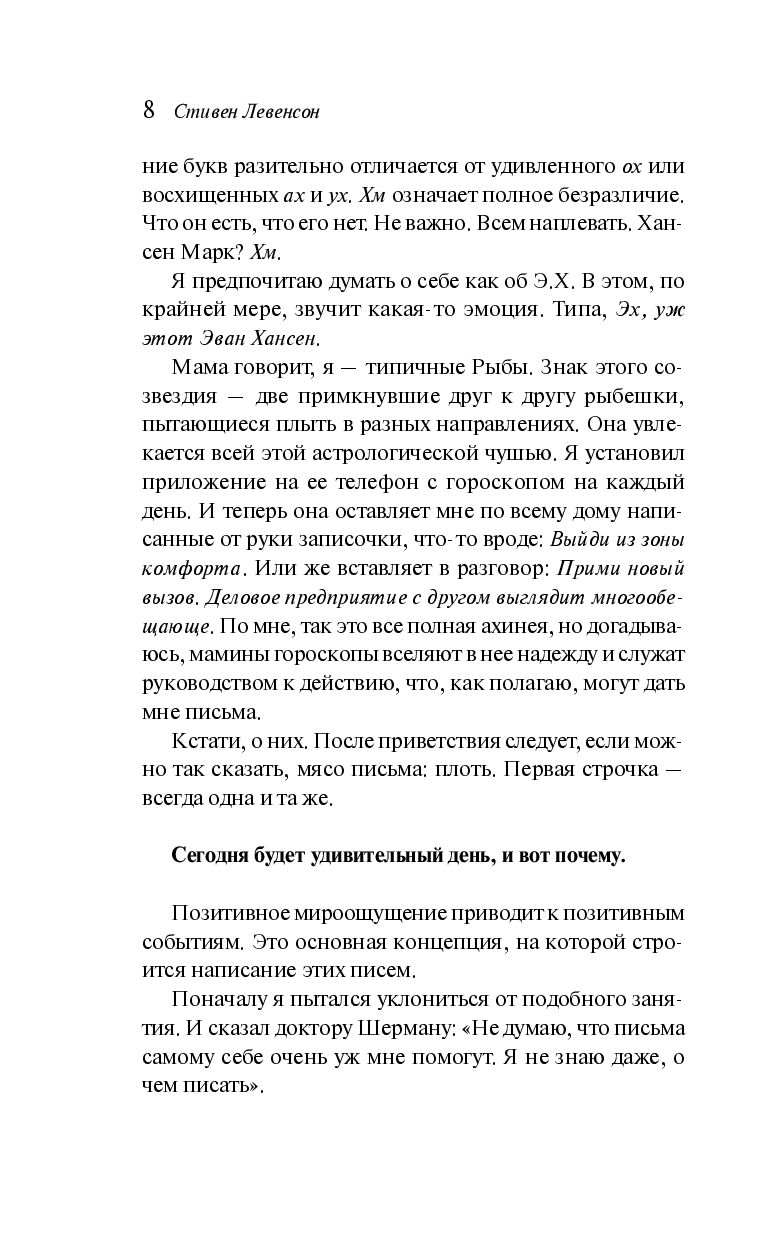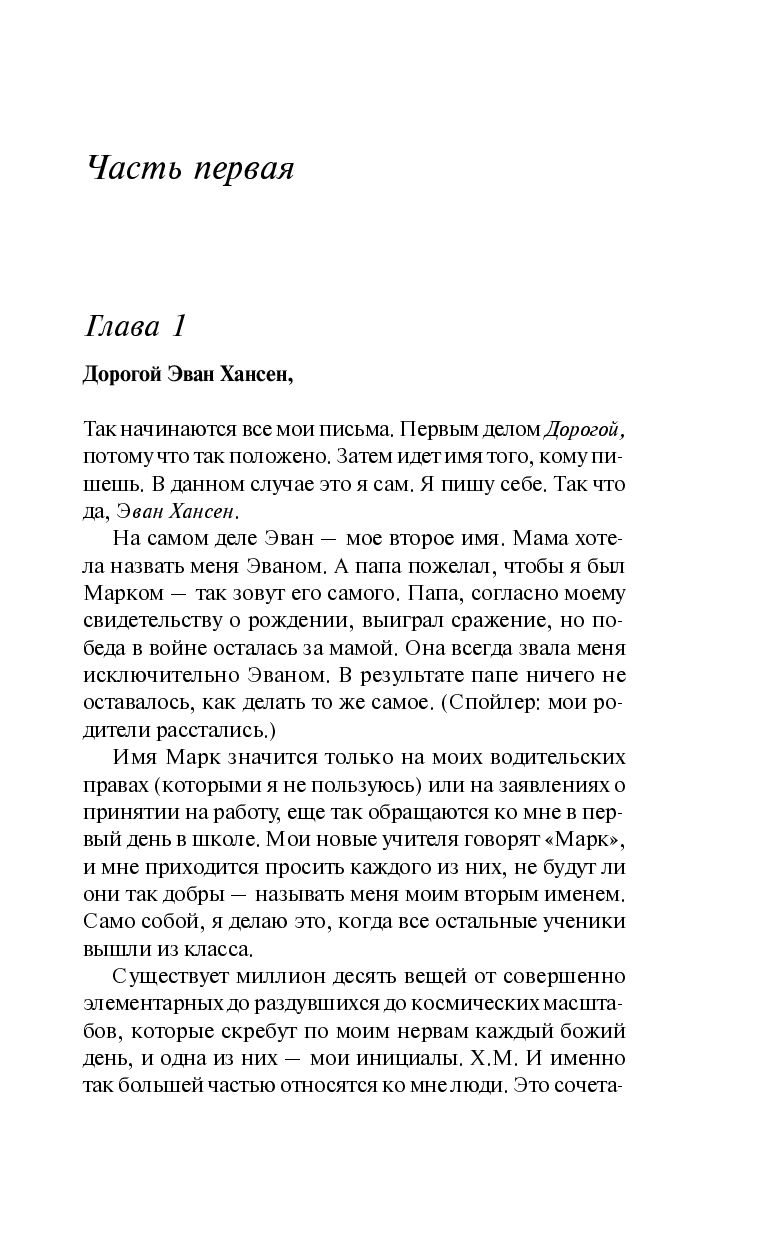Эван Хансен обычный школьник. Он боится людей и страдает социальным тревожным расстройством. Чтобы справиться с болезнью, он сам себе пишет письма.
