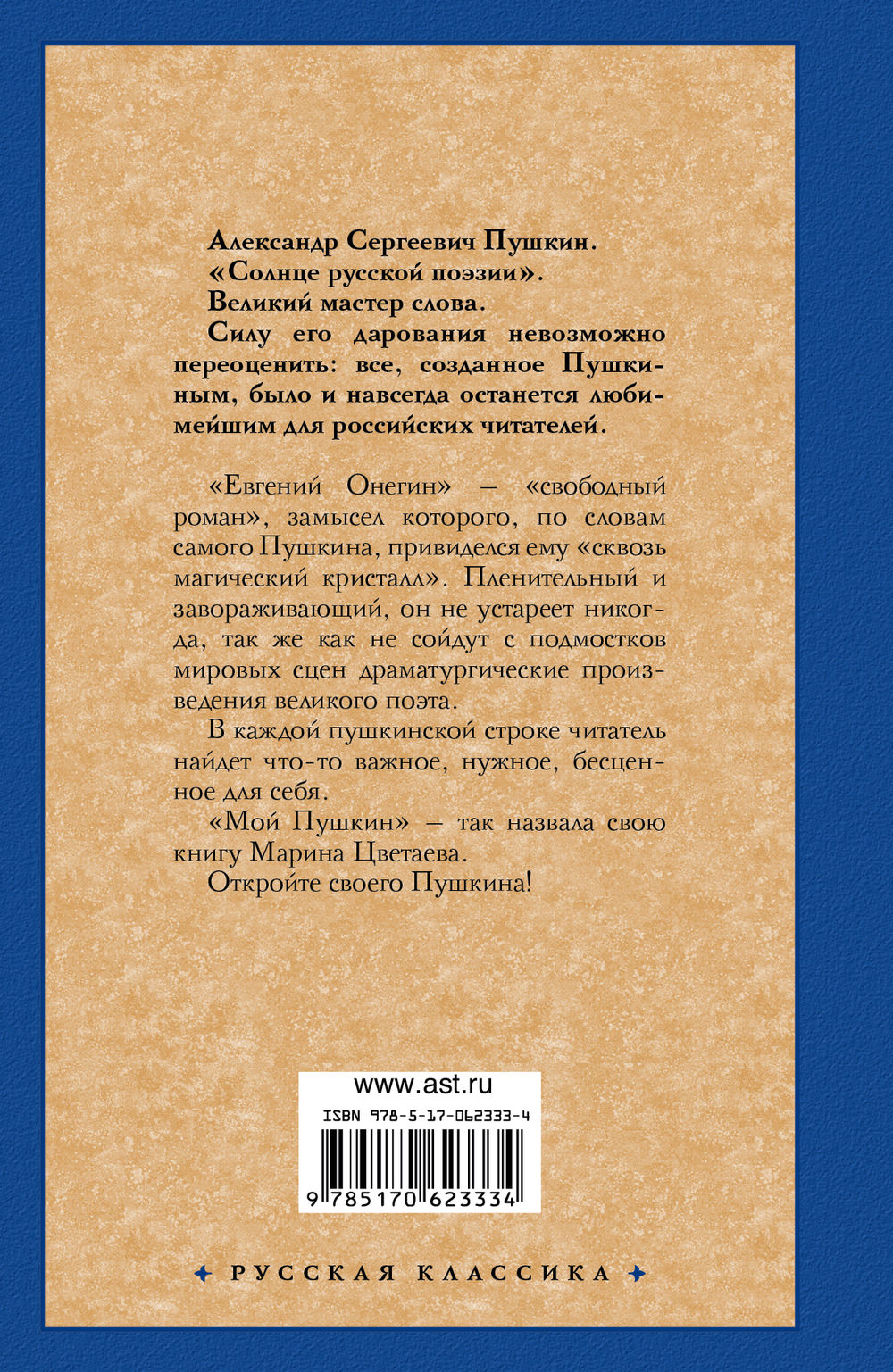 "Евгений Онегин" – "свободный роман", замысел которого, по словам самого Пушкина, привиделся ему "сквозь магический кристалл". Пленительный и завораживающий, он не устареет никогда, так же как не сойдут с подмостков мировых сцен драматургические произведения великого поэта.