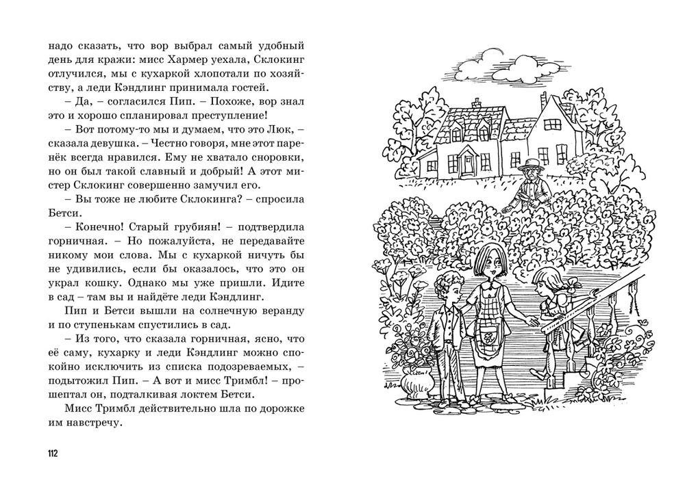 Пять юных сыщиков снова собираются вместе на летних каникулах. В этот раз они расследуют таинственное исчезновение дорогой сиамской кошки – питомицы леди Кэндлинг, новой соседки Пипа и Бетси. Полицейский А-ну-ка-разойдись и сварливый садовник мистер Склокинг уже готовы обвинить в краже помощника садовника Люка, но сыщики отказываются верить, что этот добродушный паренёк – вор. Кто же тогда украл кошку?