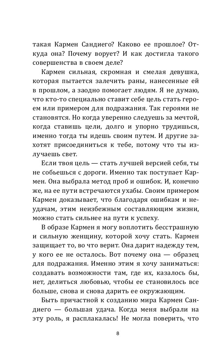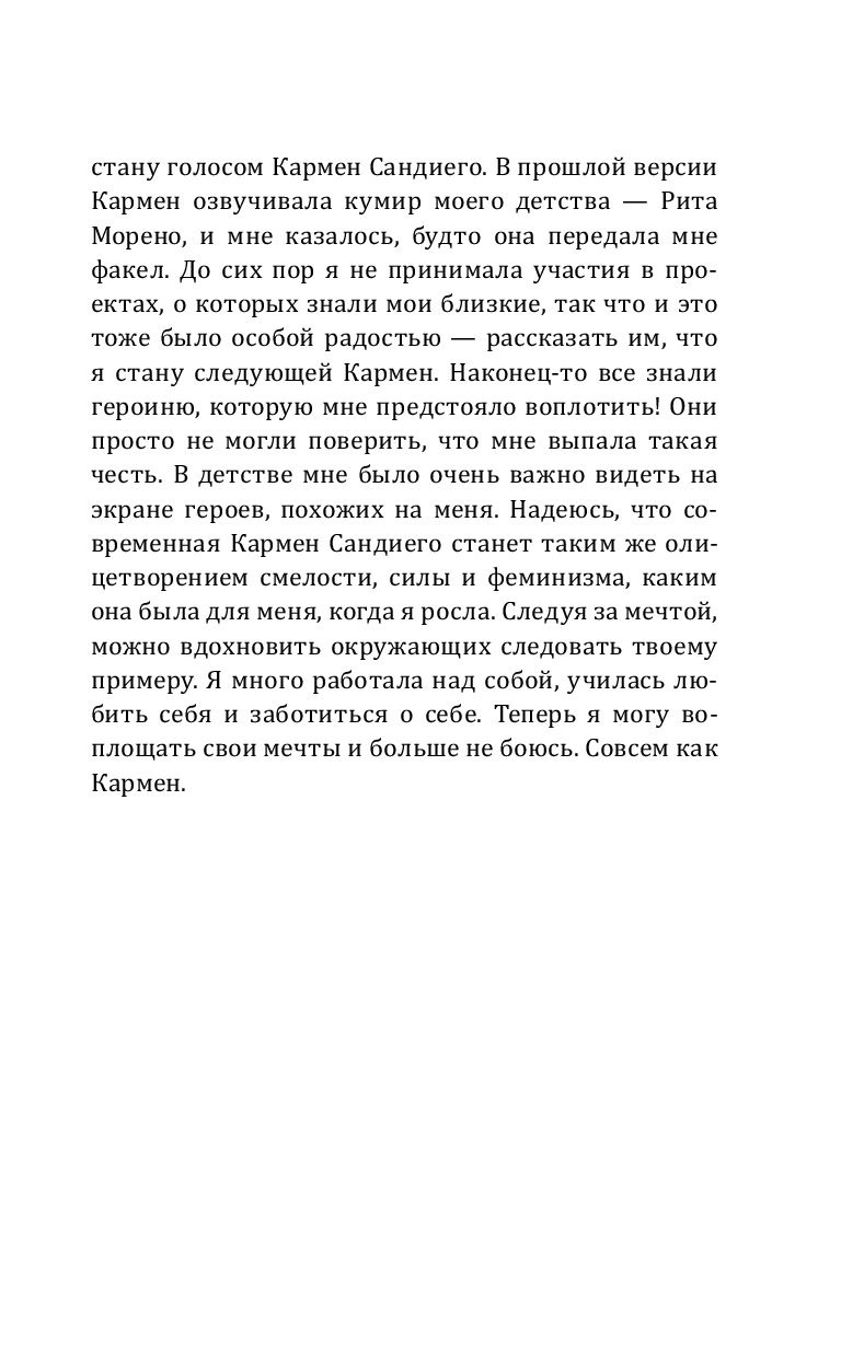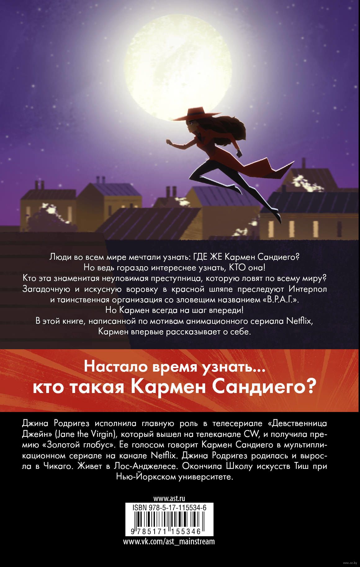 Все давно мечтали узнать: где же Кармен Сандиего? Но ведь гораздо интереснее узнать, кто она такая! Кто эта знаменитая неуловимая преступница, которую ловят по всему миру? Загадочную и искусную воровку в красной шляпе преследуют Интерпол и таинственная организация со зловещим названием "В. Р. А. Г". Но Кармен всегда на шаг впереди! В этой книге, написанной по мотивам анимационного сериала Netflix, Кармен впервые рассказывает о себе.