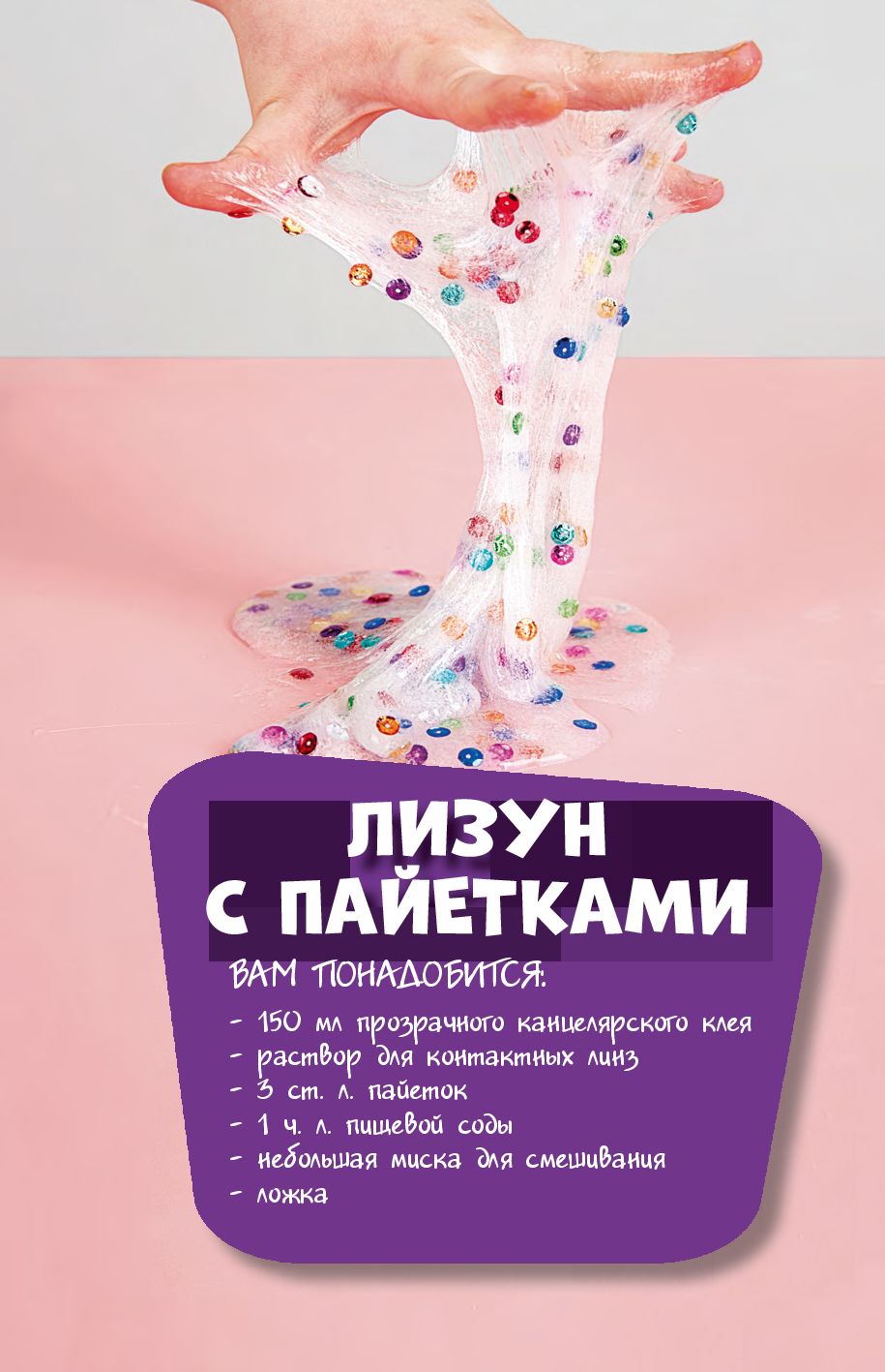 Пришло время детям хорошенько залипнуть вместе с друзьями и даже с родителями! Пошаговые рецепты с фотографиями научат всех читателей (независимо от возраста) делать блестящие, светящиеся в темноте, надувные, неоновые, графитовые, антистрессовые, металлические и другие слаймы. Собранные здесь рецепты были проверены и перепроверены десятки раз – они самые весёлые и простые из всего, что вы найдёте.