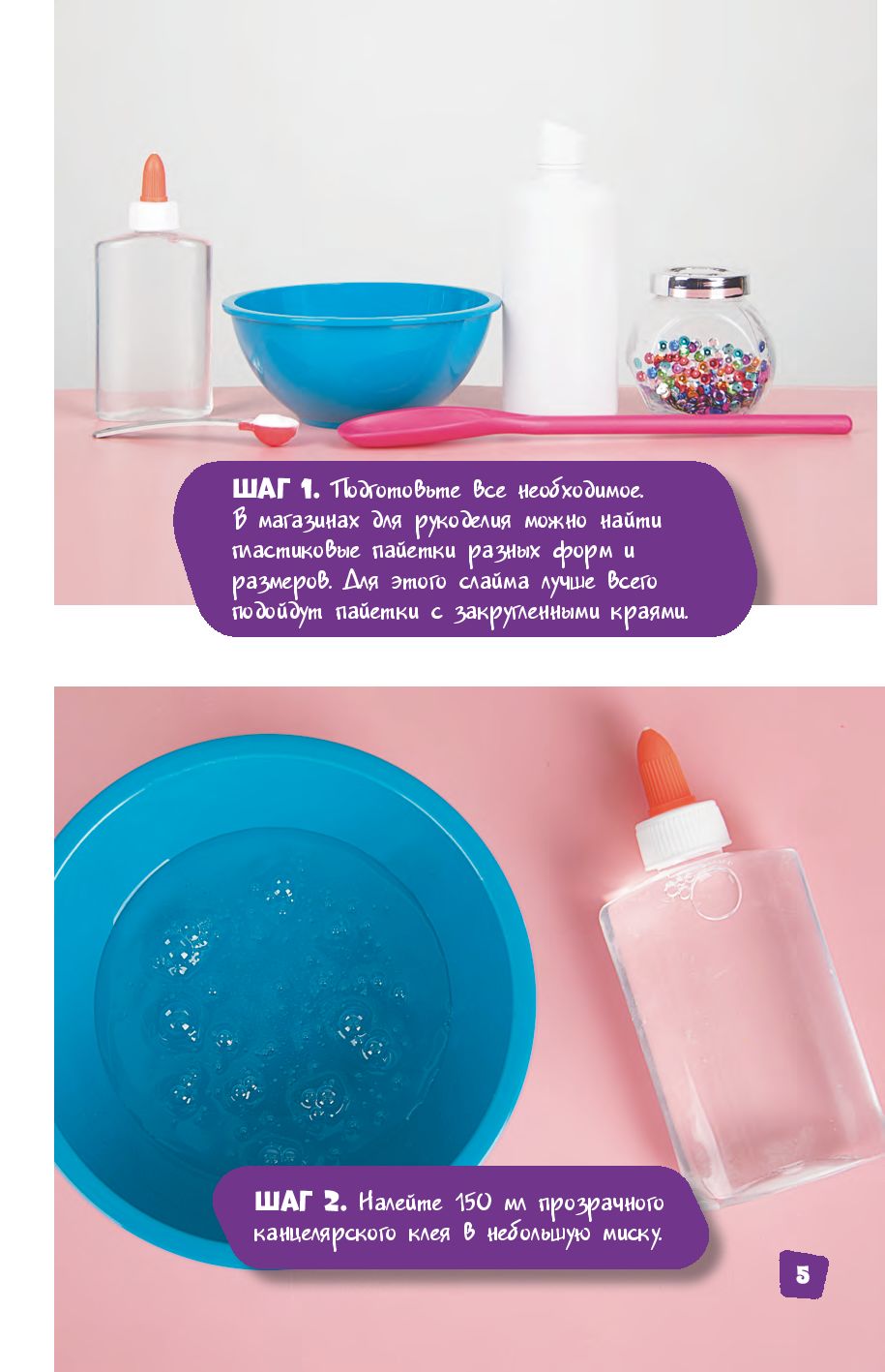 В них используются обычные ингредиенты, имеющиеся в любом доме: сода, клей, крахмал, пищевые красители.