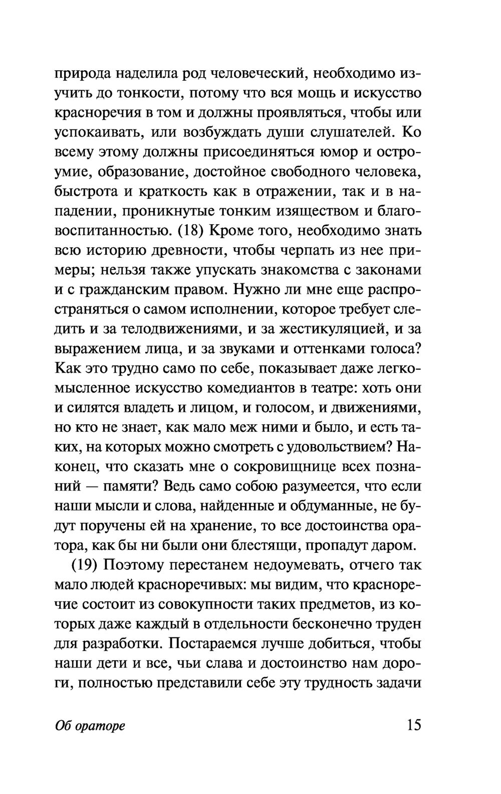В этот сборник вошли два трактата Цицерона, посвященные риторике, – "Об ораторе" и "Оратор". В философии Цицерона, близкой к стоической, сама идея ораторского искусства неразрывно связана с личностными и гражданскими качествами идеального оратора – "истинного римлянина", мужественного и непреклонного перед лицом опасности и превыше всего ставящего республиканские добродетели. Что же касается формы этих произведений, то уже современники признавали ее безукоризненное совершенство, а в последующие времена Цицерон считался (и до сих пор считается) лучшим стилистом древнеримской литературы.