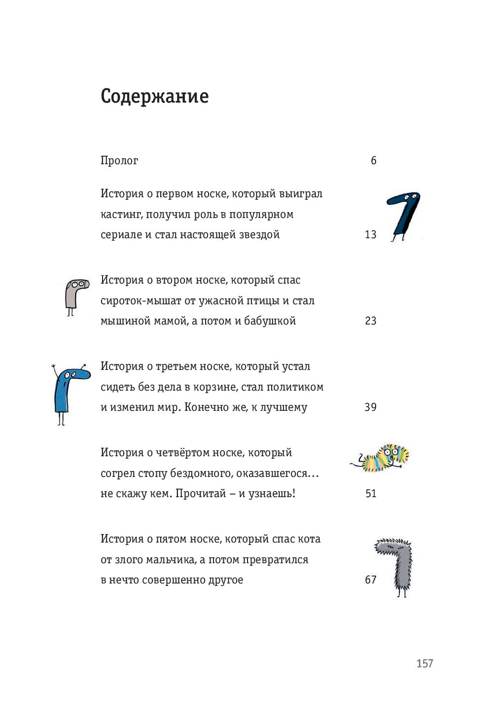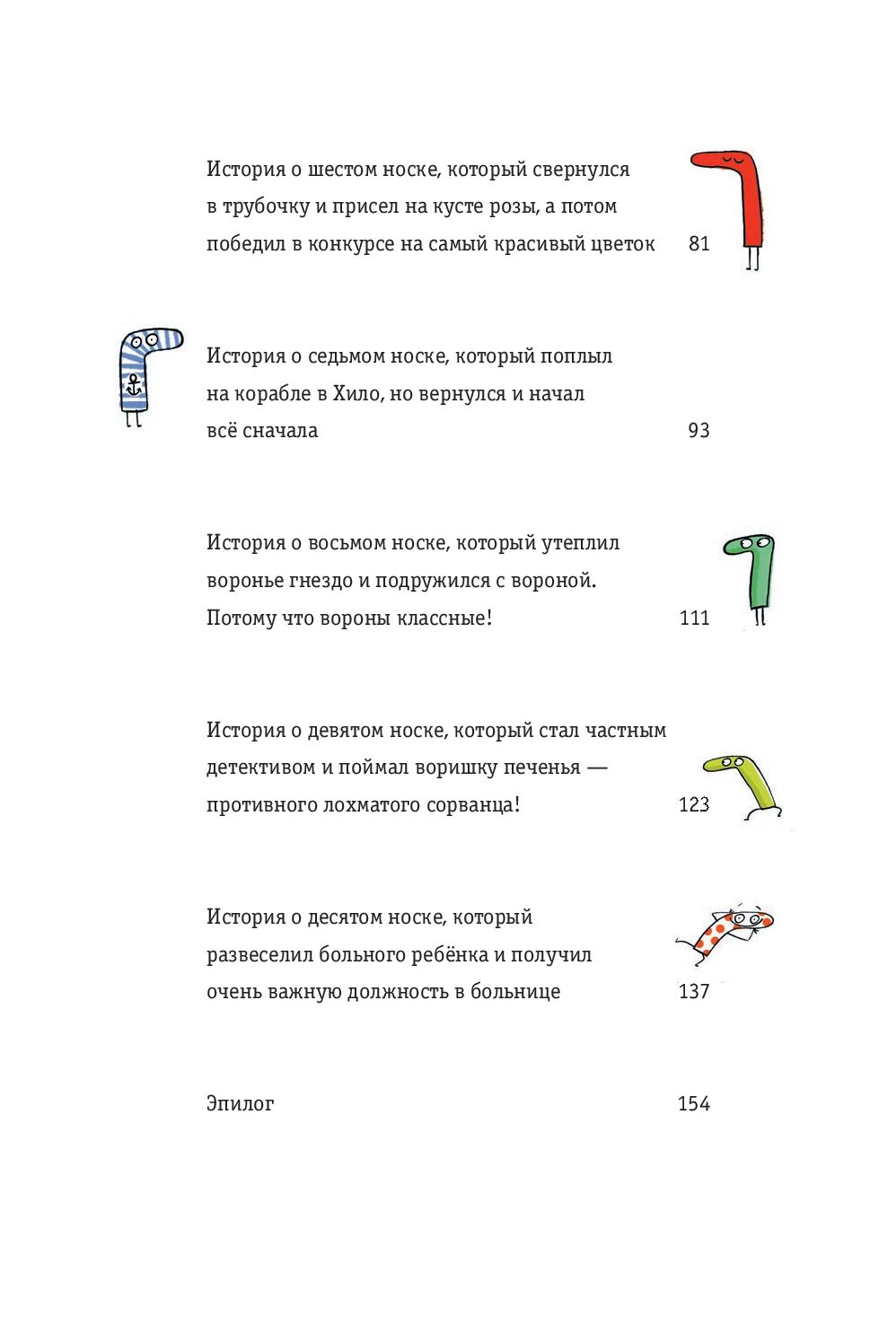 Носки – это не просто какая-то там одежда. Они бывают левыми и правыми, девочками и мальчиками. И не всем им нравится сидеть в корзине с грязным бельём. Они уходят на поиски лучшей жизни, отправляются в мир, делают головокружительные карьеры и совершают большие приключения: они становятся кинозвёздами, детективами, мышиными мамами или просто запечатывают воронье гнездо.