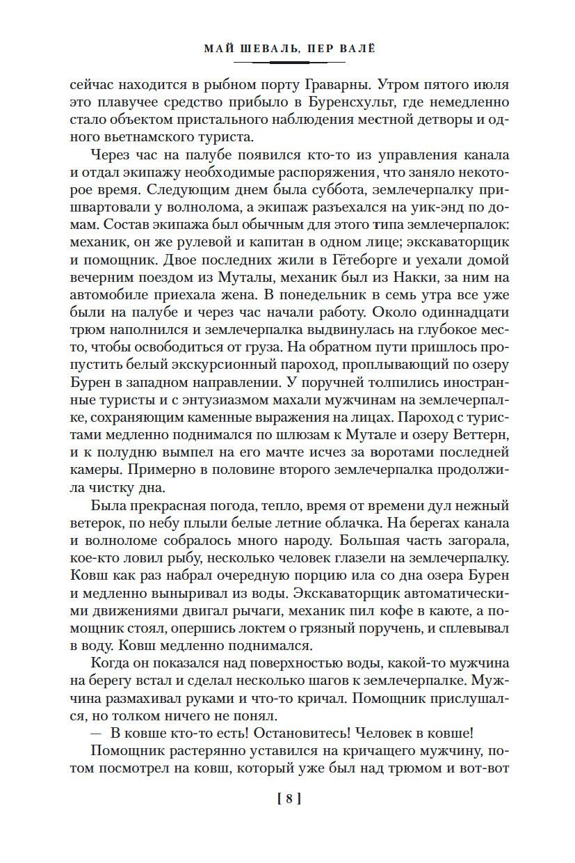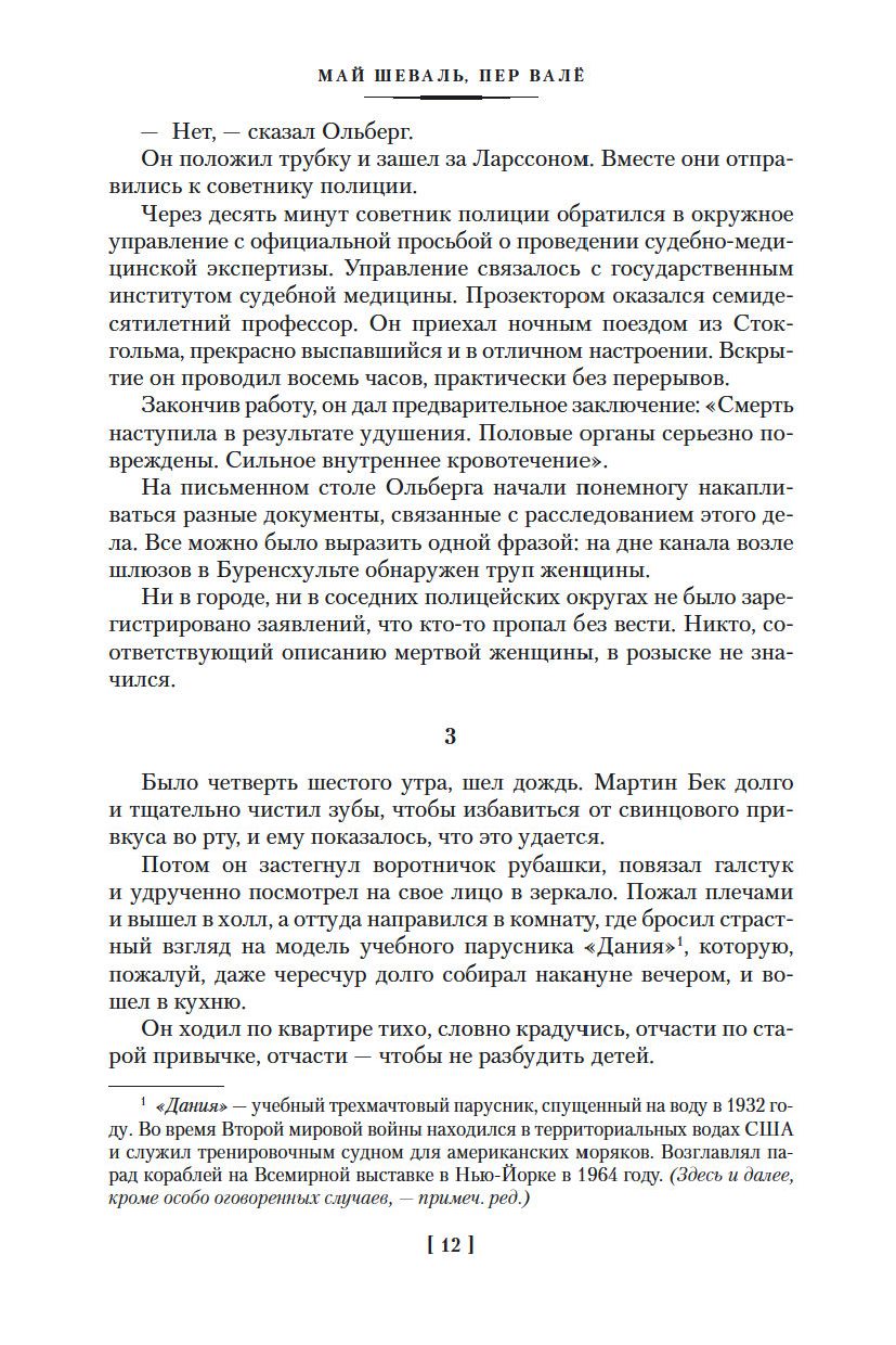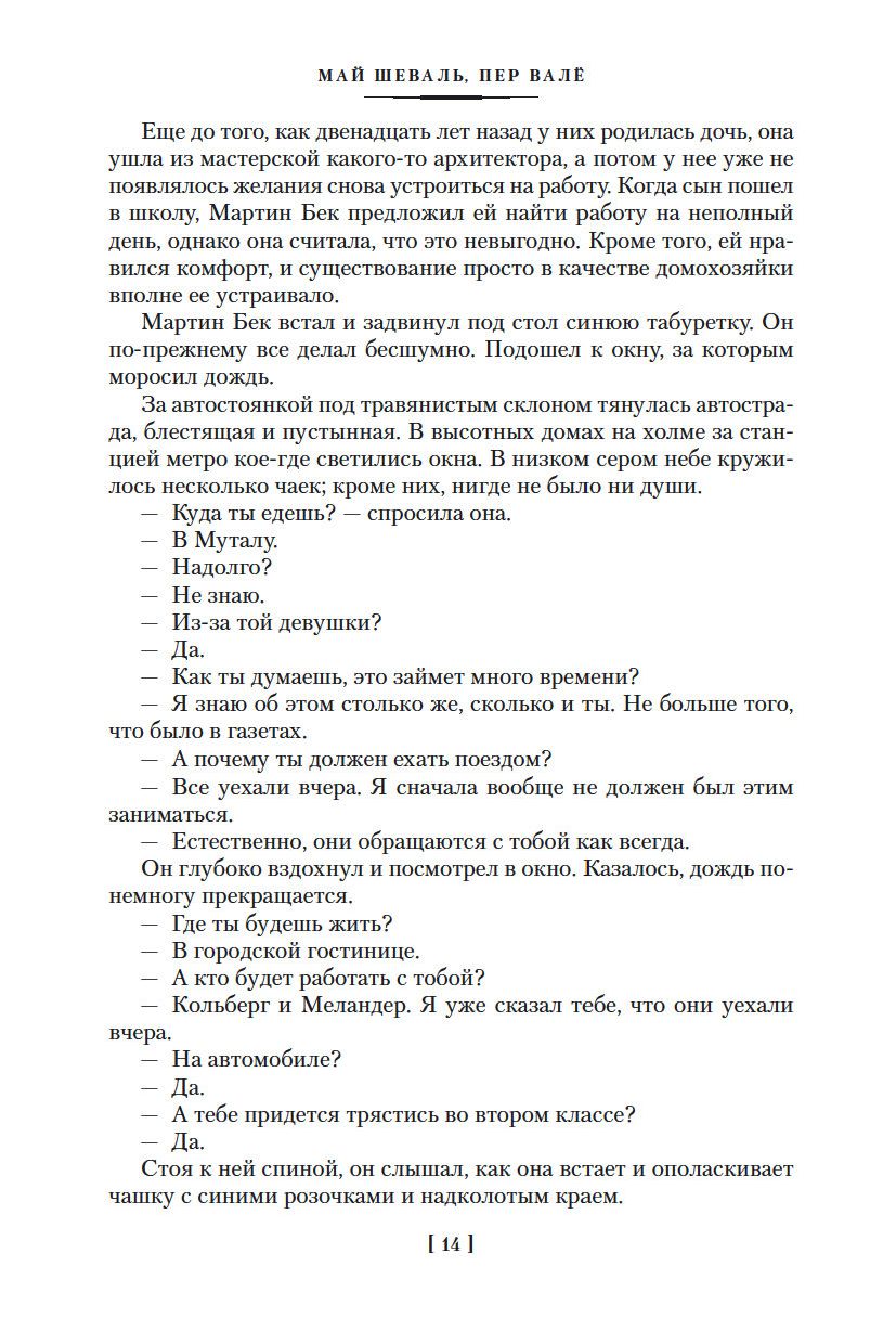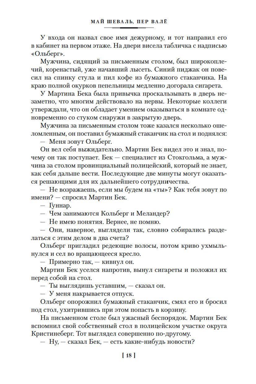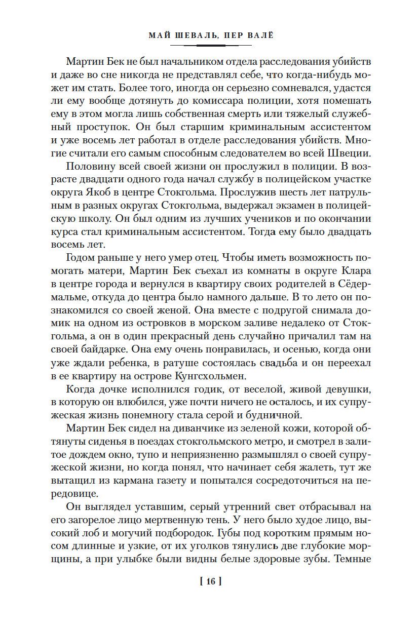 Детективный жанр под пером супругов Валё и Шеваль "перестает быть игрой воображения и развлекательным чтивом, оторванным от действительности" ("Таймс"). Безусловно, в каждом романе есть трудная головоломка, которую должны решить полицейские под началом Мартина Бека, но есть и второй план: Швеция того времени, со всеми ее проблемами и противоречиями. Читатель следует за преступником по реальным стокгольмским улицам, знакомится как с лучшими, "парадными" местами шведской столицы, так и с ее "злачными" уголками.