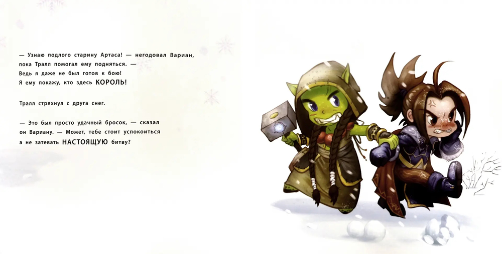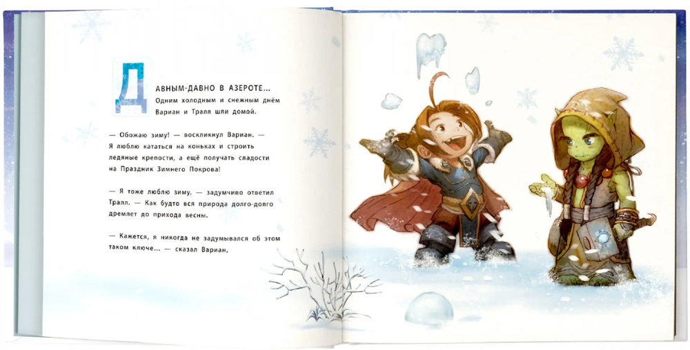 Многие поклонники легендарной World of Warcraft начали играть в нее еще в 2004 году, и с тех пор в их жизни случились изумительные события, среди самых важных из которых, – то, что они стали родителями и наблюдали растущий интерес своих детей к так увлекшему их миру. Именно для того, чтобы найти веселые и интересные способы рассказать малышам о героях и идеях Warcraft, Крис Метцен и Вэй Вонг и создали эту удивительную книгу. Итак, давным-давно в Азероте одним холодным и снежным днём Вариан и Тралл шли домой...