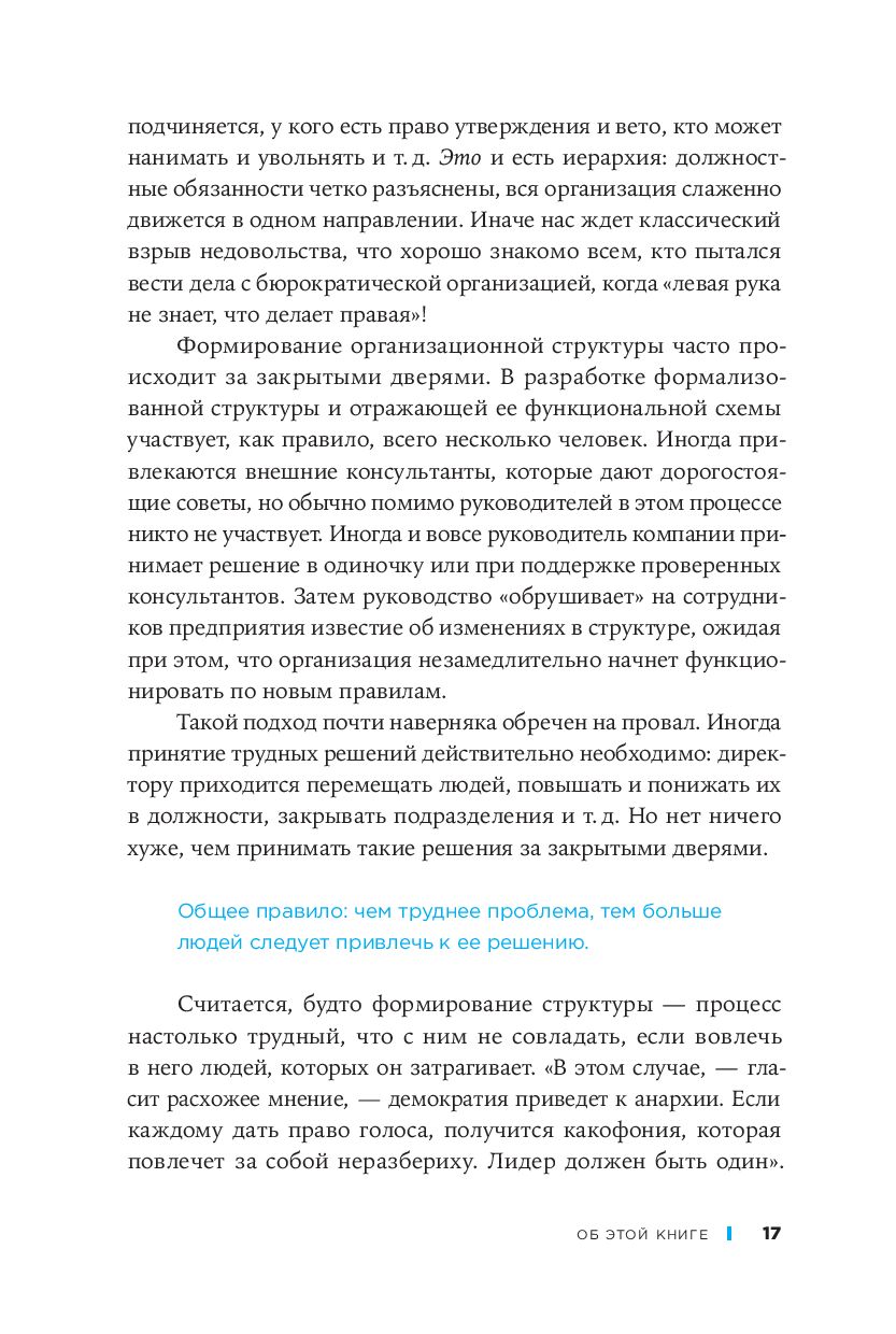 Множество проблем в бизнесе связаны с неоптимальной или устаревшей организационной структурой. Ее трансформация – дело непростое и часто весьма болезненное, поэтому неудивительно, что многие руководители откладывают изменение структуры компании на потом. Методология Адизеса, протестированная на сотнях компаний со всего мира, поможет решить большинство структурных проблем, не потеряв в управляемости и не разрушив уникальную корпоративную культуру.