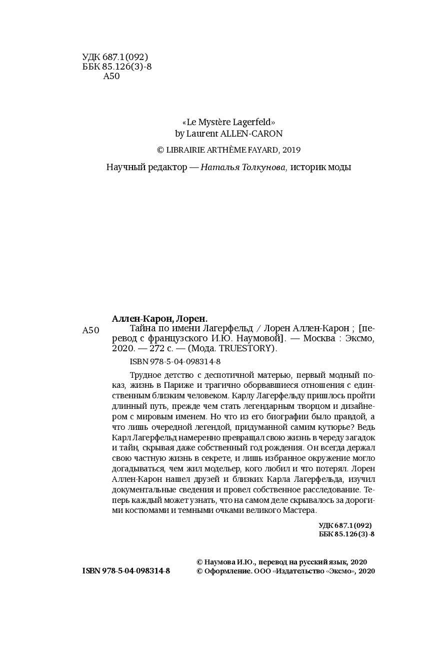 Французский журналист Лоран Аллен-Карон провел собственное расследование, собрав воедино архивные записи и публикации, опросив близкое окружение и коллег великого кутюрье, воссоздал цельный образ дизайнера и приоткрыть завесу его частной жизни.