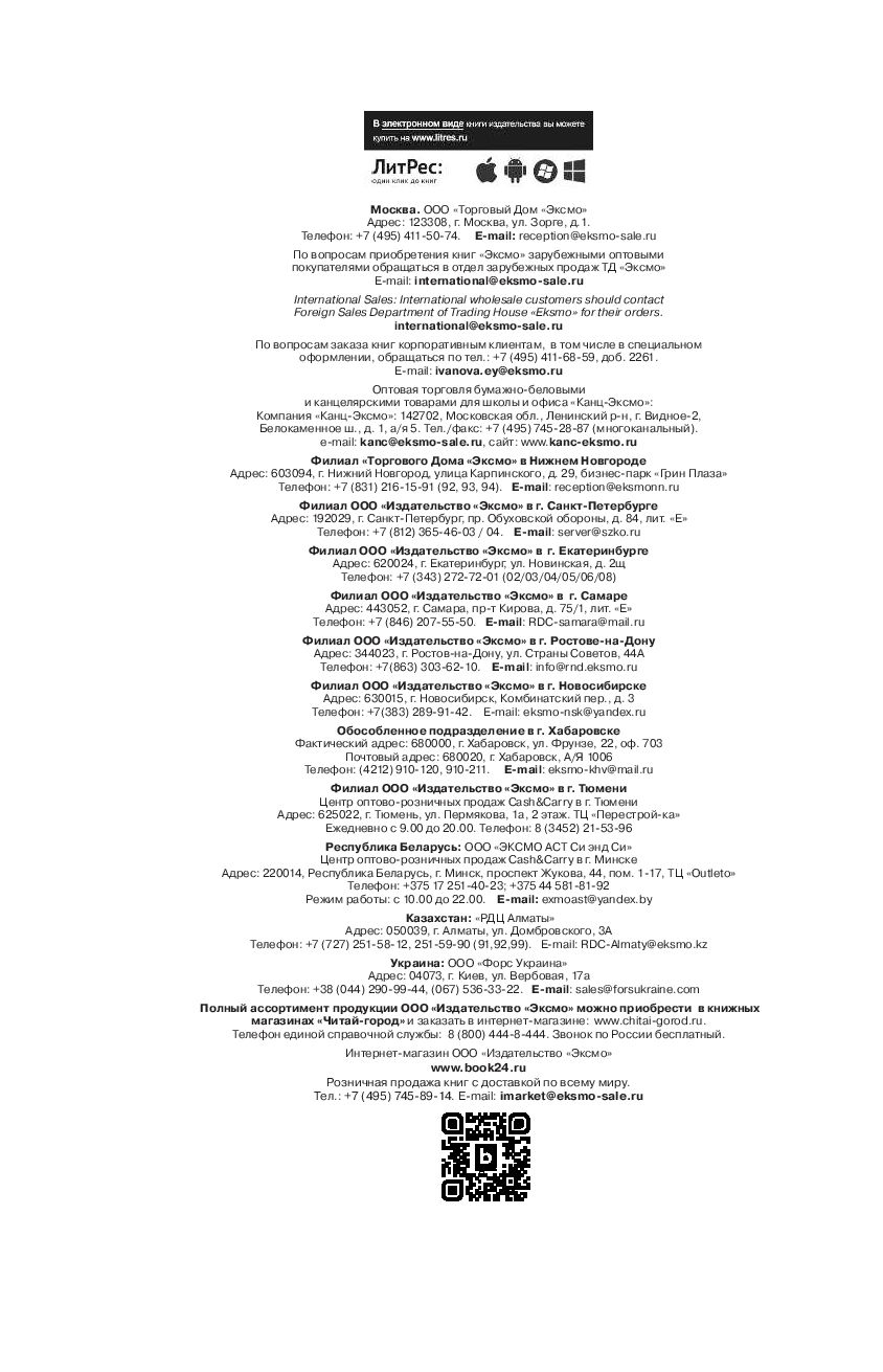 | Изготовитель | ООО «Издательство «Эксмо». РФ, г. Москва, ул. Клары Цеткин, 18, корп. 5 |