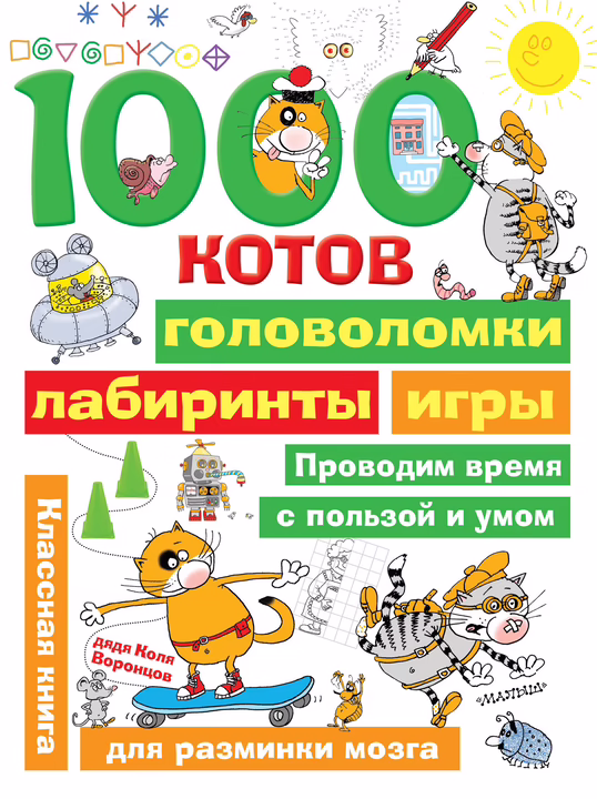 "Чем больше котов, тем лучше!" – подумал знаменитый котовед и художник дядя Коля Воронцов и придумал книгу "1000 котов". Здесь много-много котов, особенно Помпона и Трюнделя, логических котозадач, котолабиринтов, которебусов и головоломок, котопазлов и других мурчащих заданий! Это классная книжка для мальчиков и девочек и их родителей.