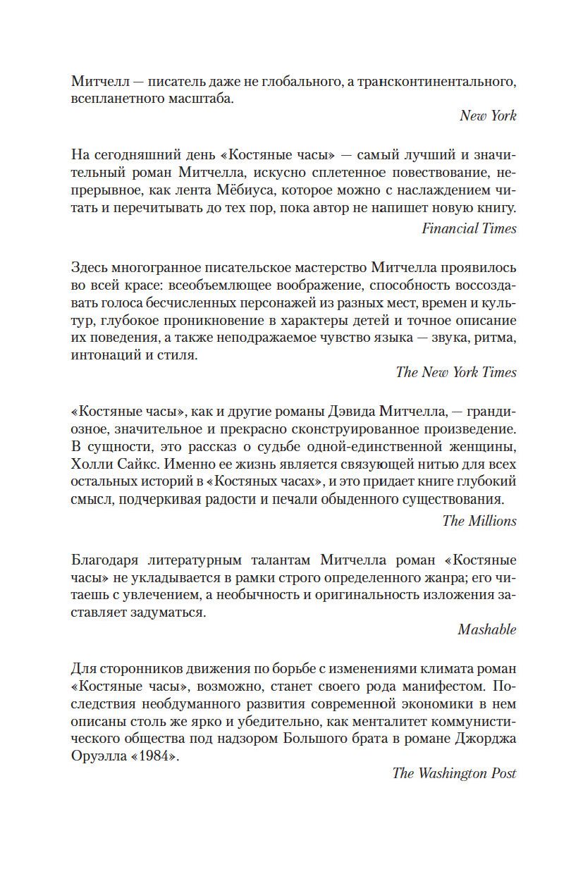 Несколько лет назад книга выходила в другом переводе, "Простые смертные". "Костяные часы" гораздо лучше и, насколько я могу понять, ближе к оригиналу. Потому что после первого перевода мне стало казаться, что Митчелл исписался. Теперь я понимаю, что нет.