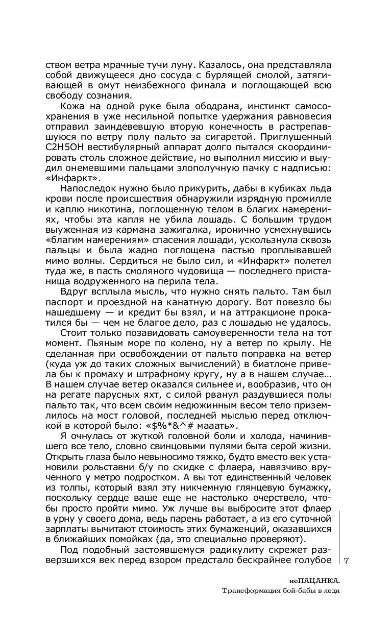 Это история моей жизни и пути к победе в первом сезоне телевизионного шоу "Пацанки", история взлетов и падений, кардинальной смены имиджа и образа жизни, преображения из "мужчины" в женщину, пути становления истинной леди. Это не сборник волшебных рецептов, заумных и трудноосуществимых методик, не универсальная инструкция по достижению успеха в жизни и карьере. Это история о том, как начать жить здесь и сейчас, научиться принимать жизнь и меняться к лучшему, сбросить оковы страха неудачи и смело идти к своей мечте. Это исповедь человека, сделавшего выводы из ошибок и жестоких уроков жизни. Это простые, но очень актуальные советы, которые способны поддержать читателя в самой трудной ситуации и помочь увидеть свет в конце тоннеля. Это книга для тех, кто готов посмотреть правде в глаза.