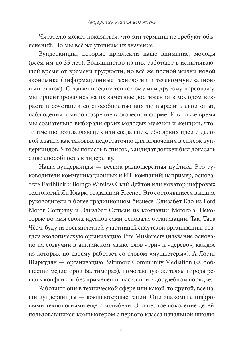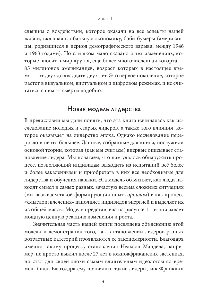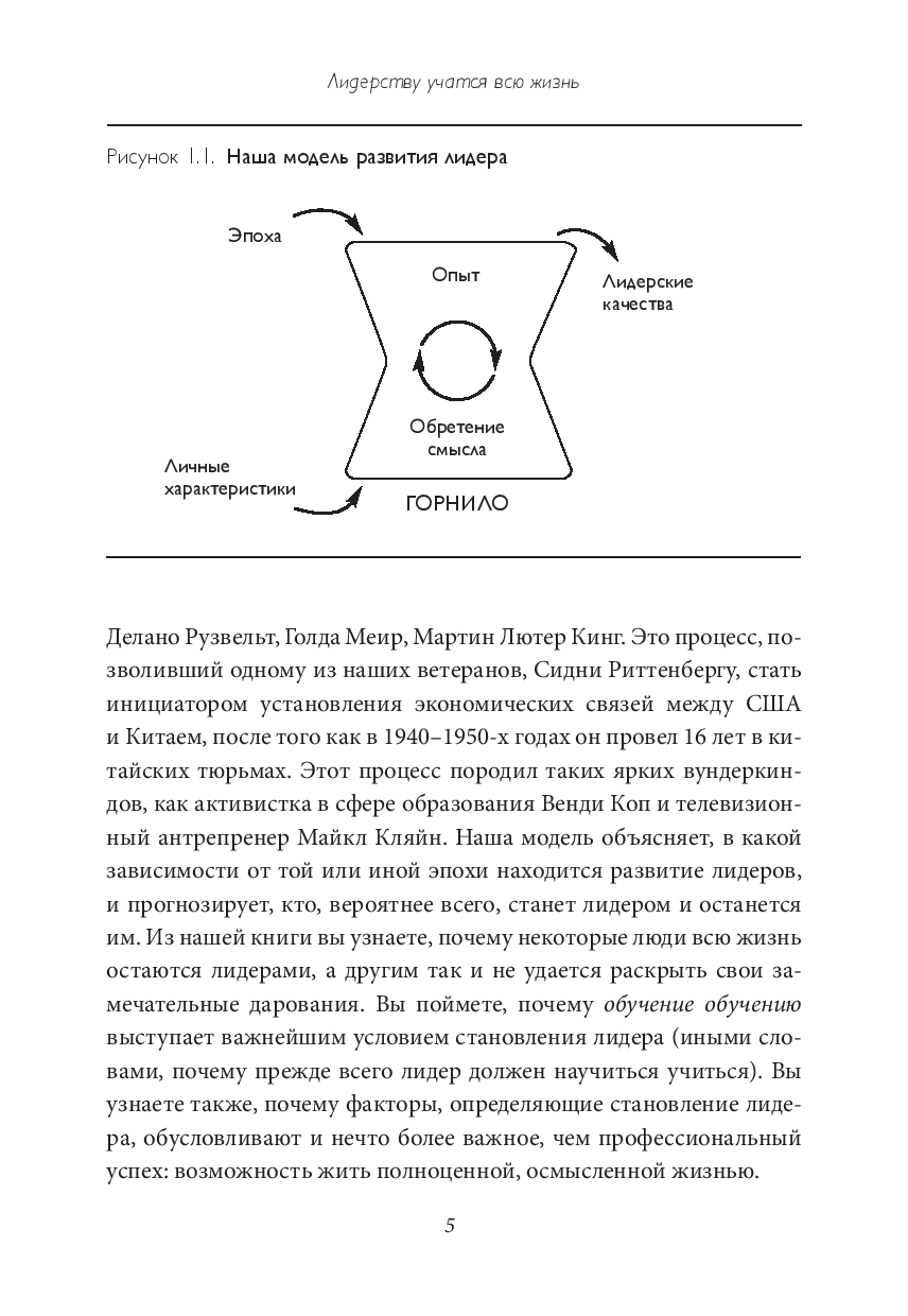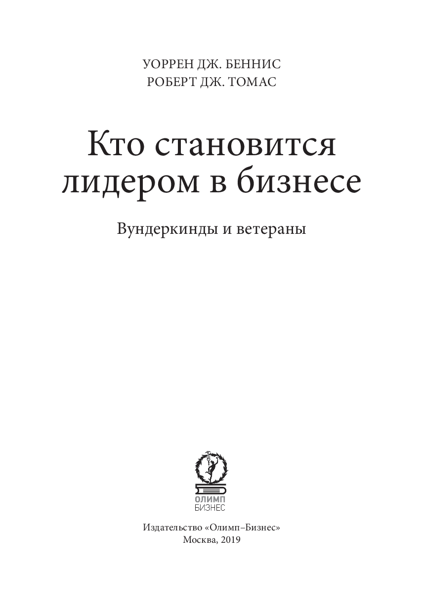 В книге представлена принципиально новая попытка истолкования феномена лидерства. Основываясь на концепции горнила, радикального экзистенциального опыта, необходимого для становления лидера, авторы изучают жизнь и характер бизнесменов старой школы (ветеранов) и сегодняшнего поколения "гиков" (вундеркиндов). В биографиях этих людей находят свое отражение поворотные моменты экономической истории США минувшего столетия.
