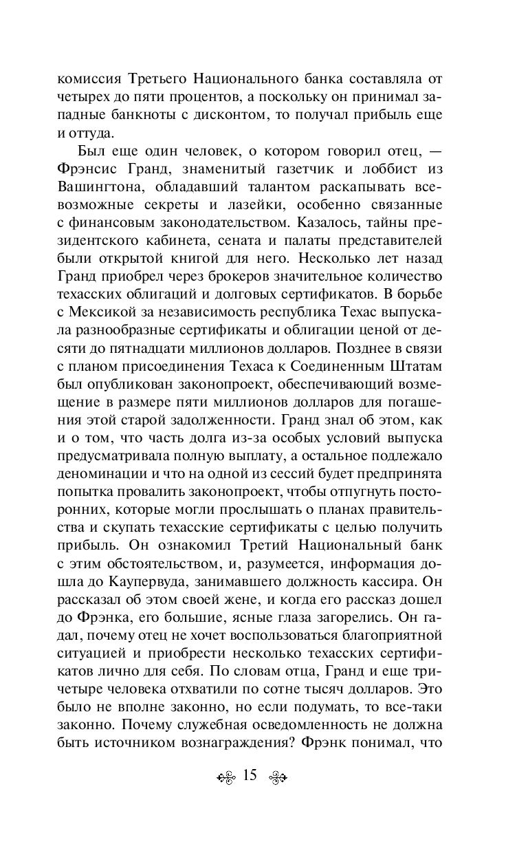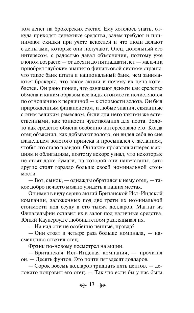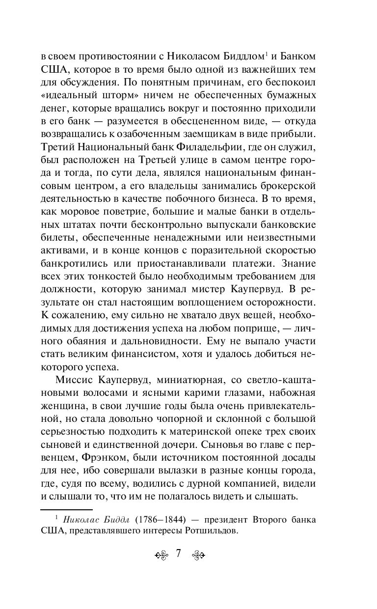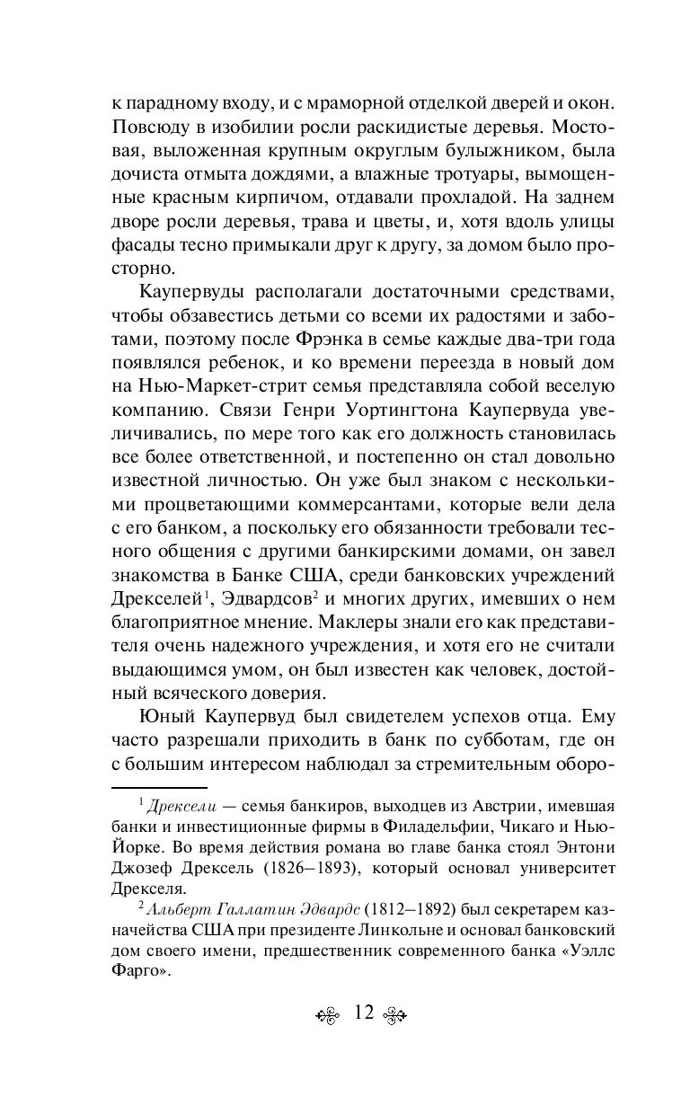 В основе эпоса о Фрэнке Каупервуде – биография реального чикагского миллионера Чарлза Йеркса. Большой бизнес, финансовые аферы и махинации, жизнь и нравы олигархов блестяще описаны в трилогии.
