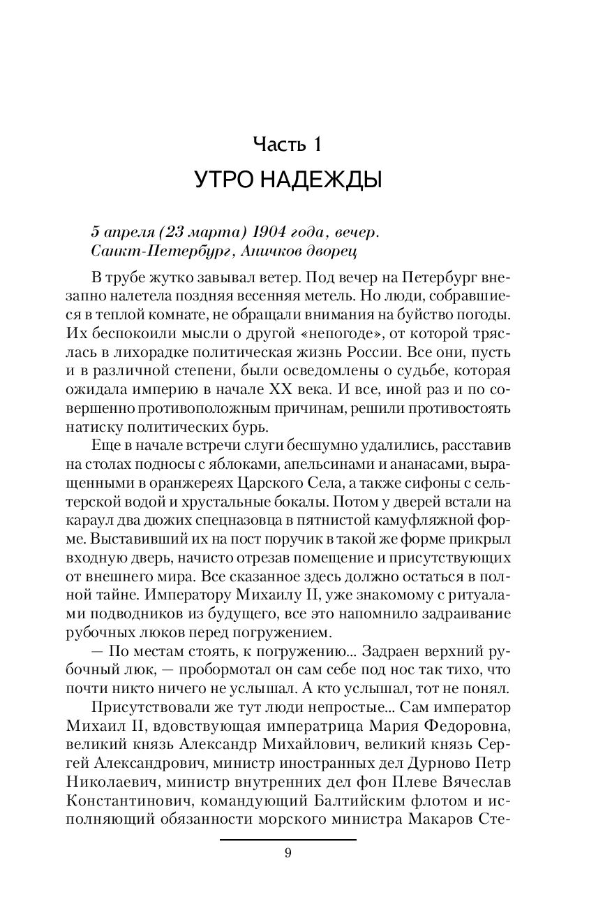 Много событий произошло с той поры. Япония вынуждена была подписать мирный договор, залогом которого дочь императора Мацухито стала невестой нового русского царя Михаила II. Вождь большевиков Ленин вернулся в Россию, где вместе с беглым ссыльнопоселенцем Иосифом Джугашвили согласился принять участие в строительстве новой России.