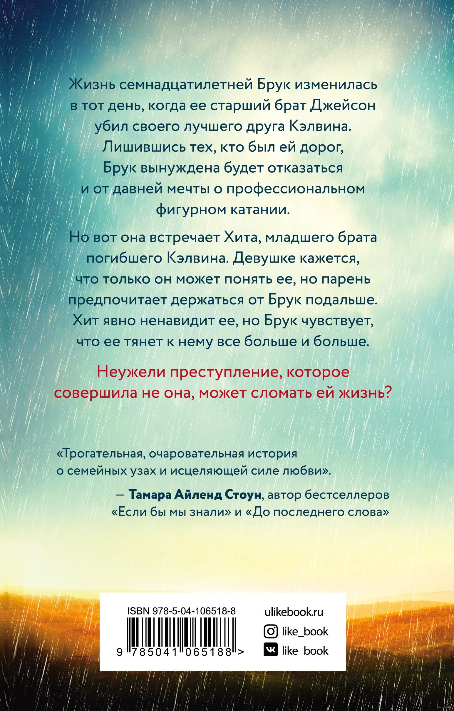 Жизнь семнадцатилетней Брук изменилась в тот день, когда ее старший брат Джейсон убил своего лучшего друга Кэлвина. Лишившись тех, кто был ей дорог, Брук вынуждена будет отказаться и от давней мечты о профессиональном фигурном катании. Но вот она встречает Хита, младшего брата погибшего Кэлвина. Девушке кажется, что только он может понять ее, но парень предпочитает держаться от Брук подальше. Хит явно ненавидит ее, но Брук чувствует, что ее тянет к нему все больше и больше. Неужели преступление, которое совершила не она, может сломать ей жизнь?