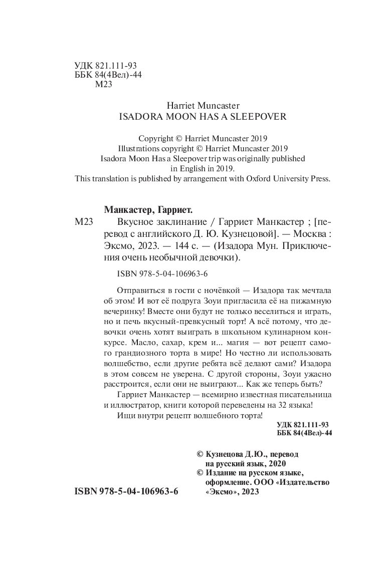 | Название в оригинале | Isadora Moon Has a Sleepover |