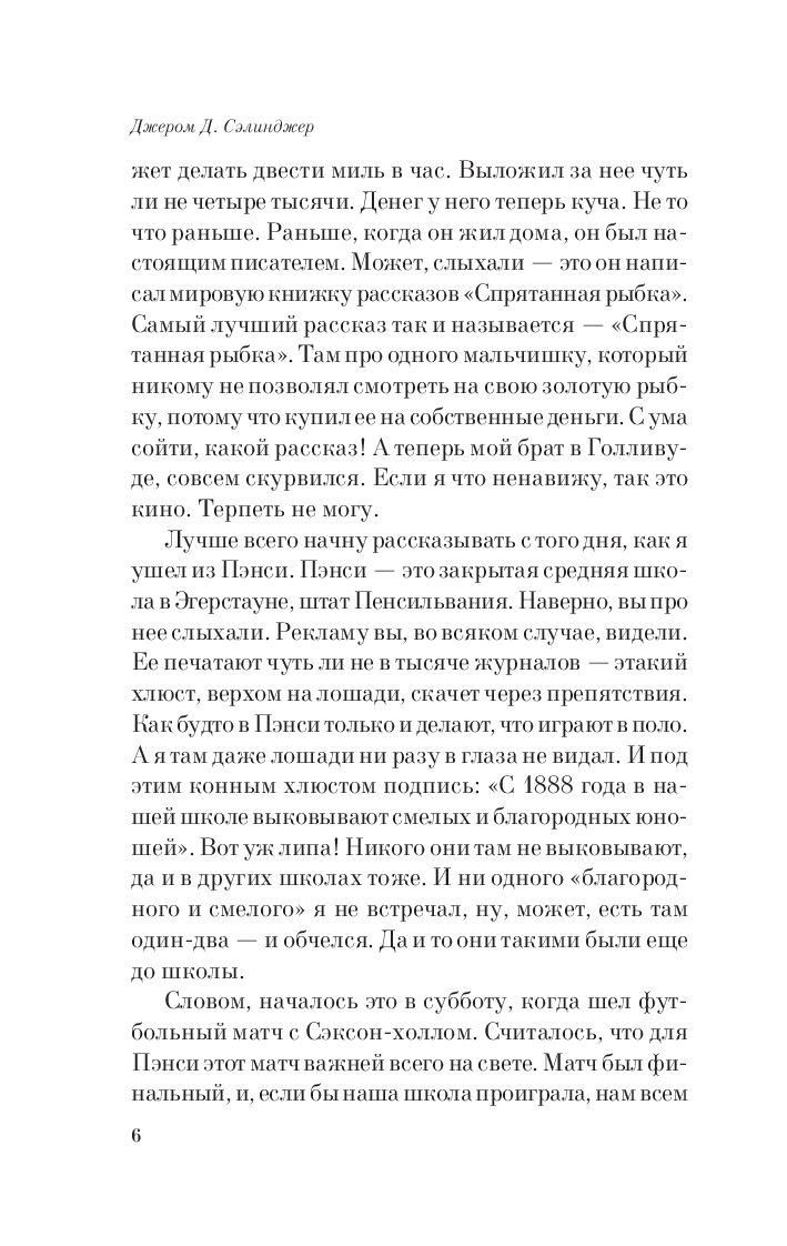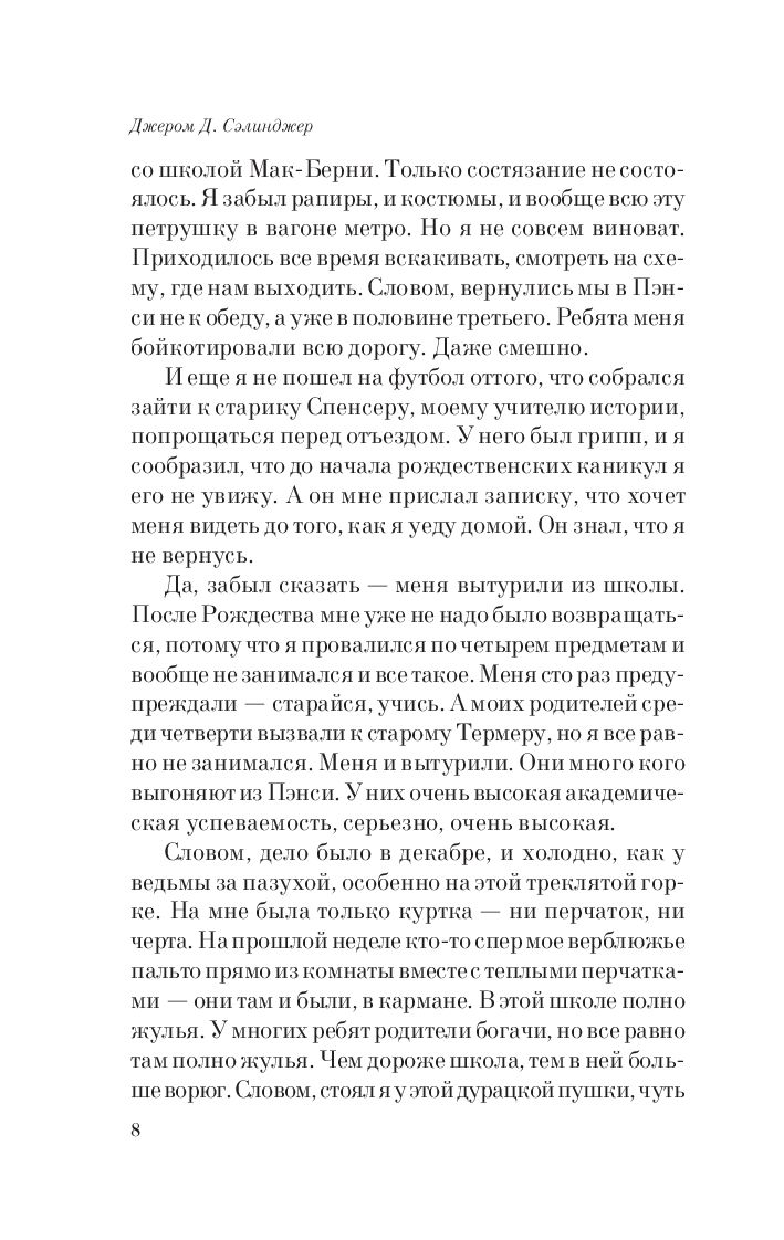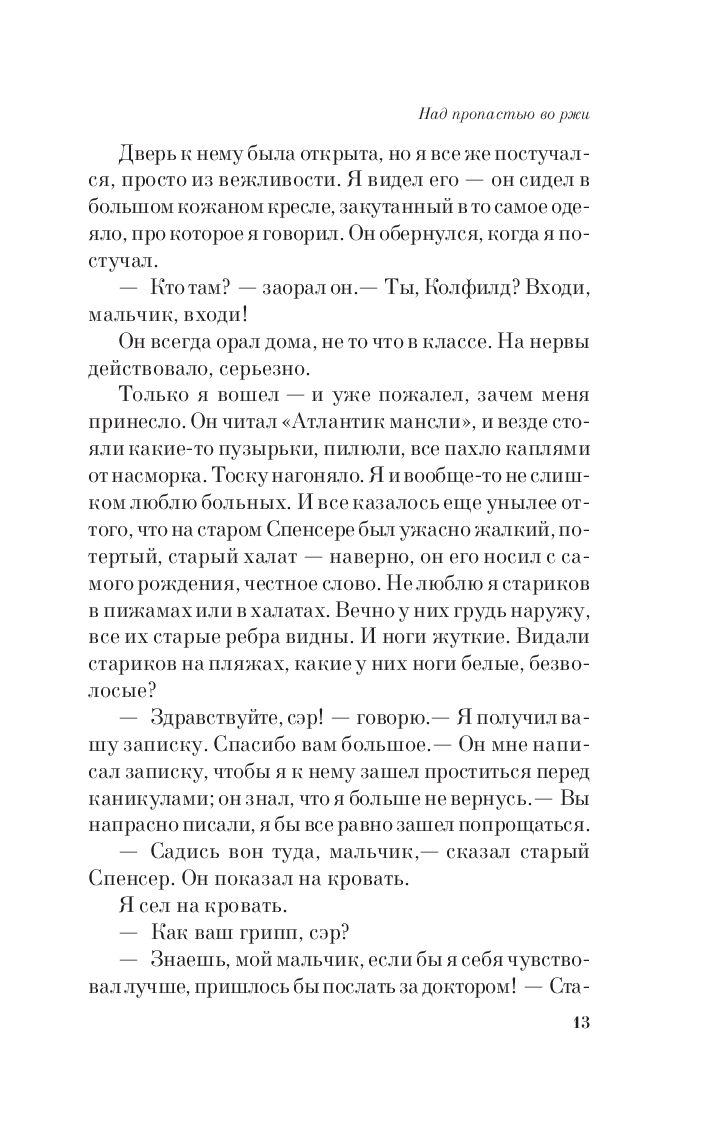 Многие считают, что книга — ни о чём, сравнивают её с произведением Сильвии Платт «Под стеклянным колпаком». Но для меня книга показалась неплохой. Главный герой всю книгу словно находится в поисках чего-то, ищет, сам не понимая, чего, и это меня затянуло. Бывают такие состояния, когда ты ничего не понимаешь в своей жизни, не знаешь, чего тебе хочется, и ты пребываешь в таких же поисках, как и Холден. Что-то вроде эмоционального застоя, когда тебе и не плохо, и не хорошо. Книга попалась мне как раз в такое время, и я узнала себя в главном герое. К тому же, интересно, что книга связана со стихом Роберта Бернса и с ошибкой, как герой запомнил строки этого стиха. Когда упоминается этот момент, мы видим, что есть в жизни Холдена какая-то мечта, рождённая через чужое творчество. Это, пожалуй, один из лучших моментов книги