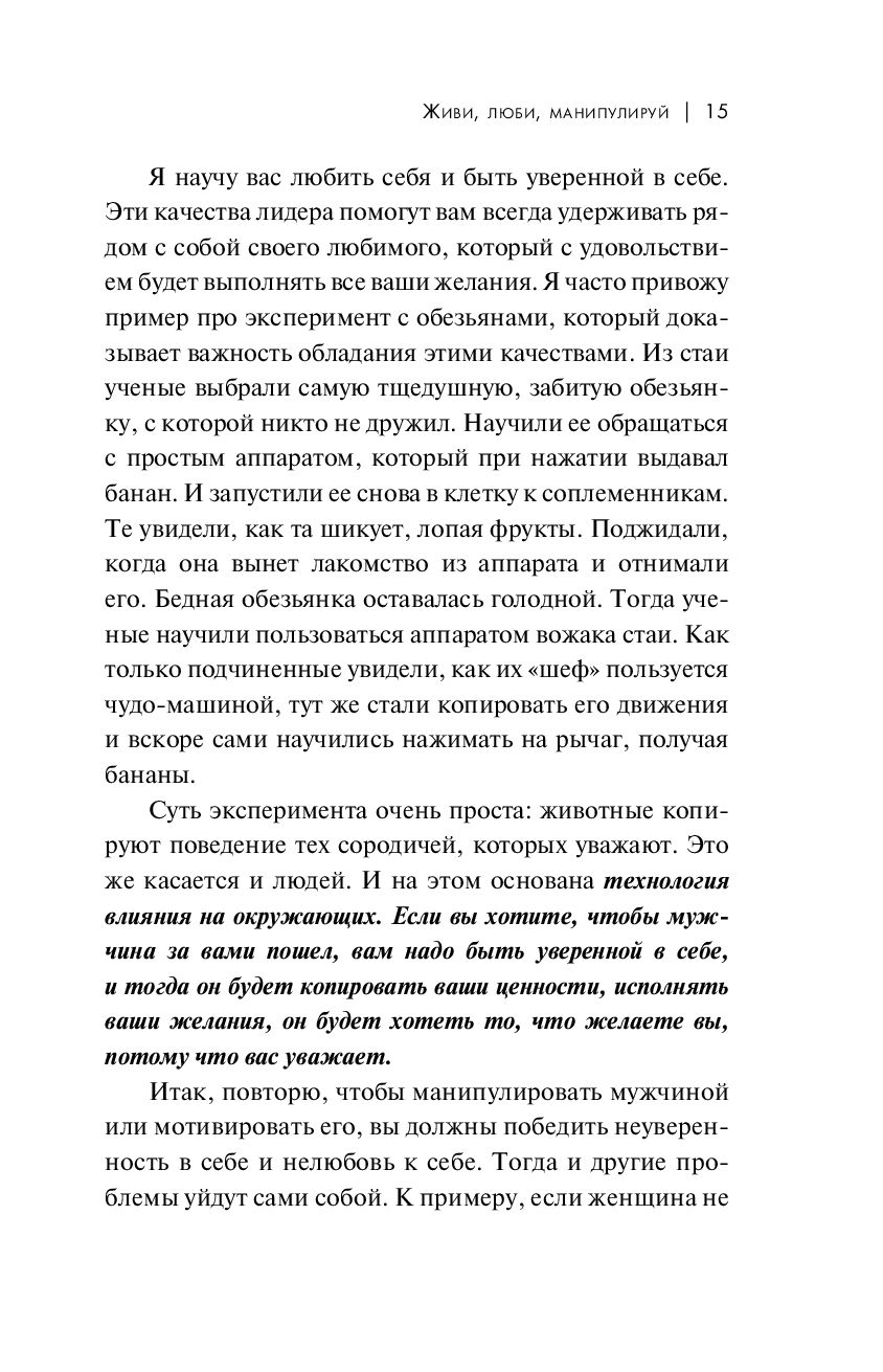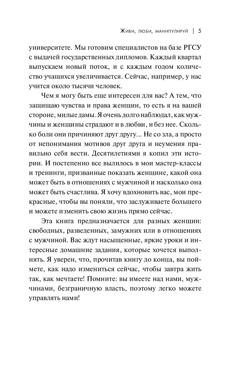 Книга предназначается для разных женщин: свободных, разведенных, замужних или в отношениях. Вас ждут насыщенные, яркие уроки и интересные домашние задания, которые хочется выполнять. Прочитав книгу, вы поймете, как надо измениться сейчас, чтобы завтра жить так, как мечтаете! Помните: вы имеете над мужчинами безграничную власть, поэтому легко можете ими управлять!
