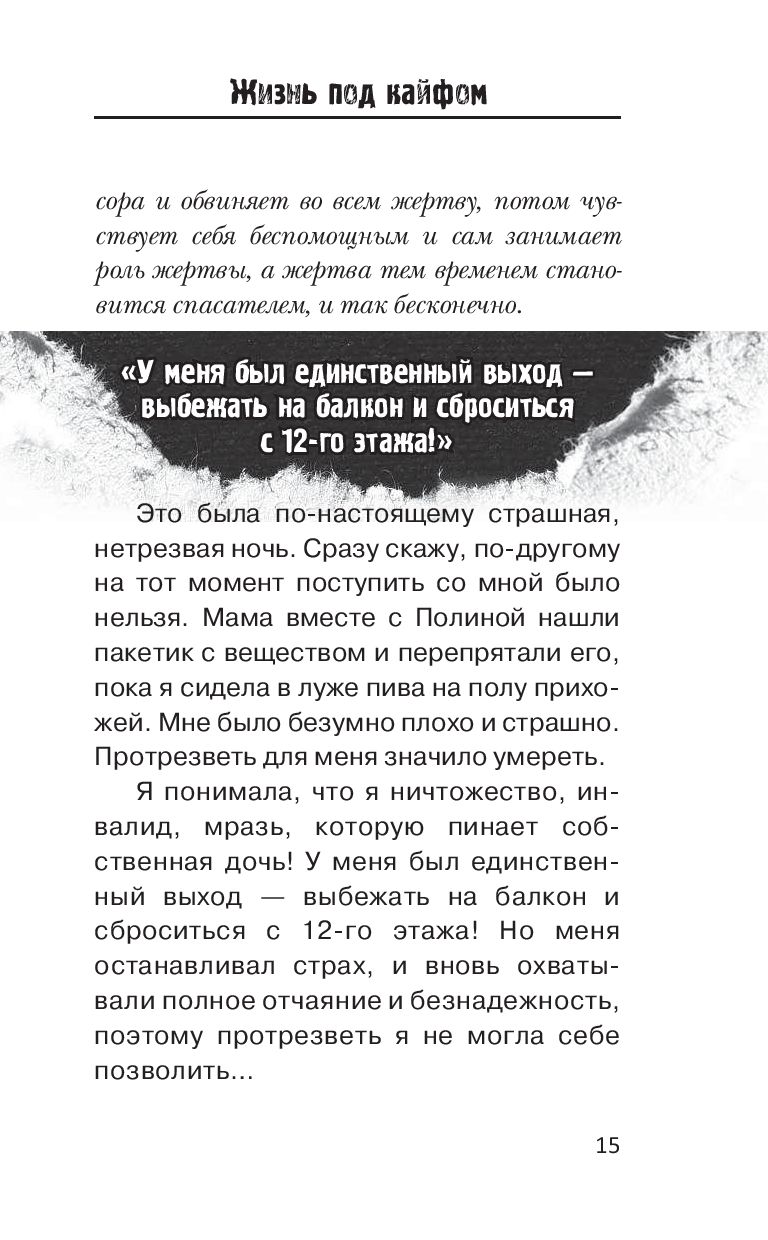Обязательно купите эту книгу, если вы готовы изменить свою жизнь в лучшую сторону или кто-то из ваших близких нуждается в помощи. Если вы не ханжа и не циник и вам интересна чужая реальная жизнь, описанная в книге без купюр, эта книга точно для вас.