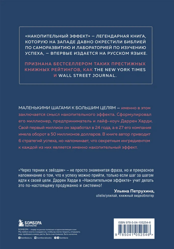 "Накопительный эффект" – легендарная книга, которую на Западе давно окрестили "библией по саморазвитию" и "лабораторией по изучению успеха". Впервые издаётся на русском языке. Признана бестселлером таких престижных книжных рейтингов как The New York Times и Wall Street Journal.