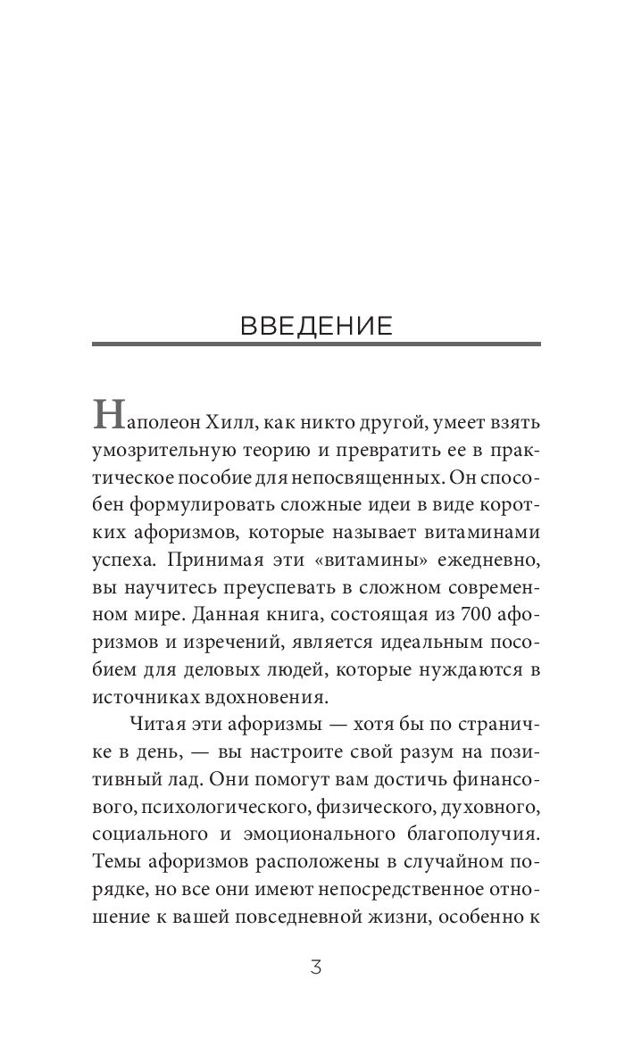 Наполеон Хилл мастерски превращает не совсем понятную теорию в простое практическое пособие для начинающих. Он умеет формулировать сложные идеи в виде коротких афоризмов. Ежедневная порция этих "витаминов" мудрости научит вас достигать цели в любых ситуациях.