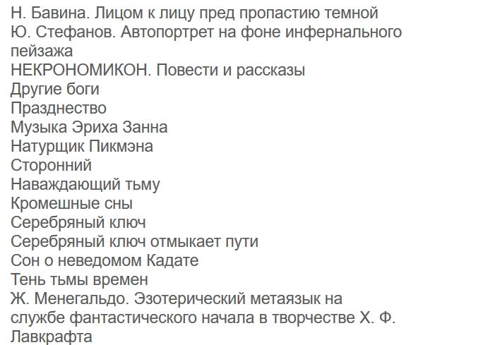 В состав сборника вошли признанные шедевры зловещих фантасмагорий Лавкрафта, в которых столь отчетливо и систематично прослеживаются некоторые доктринальные положения Золотой Зари, что у многих авторитетных комментаторов невольно возникала мысль о некой магической трансконтинентальной инспирации американского писателя тайным орденским знанием.