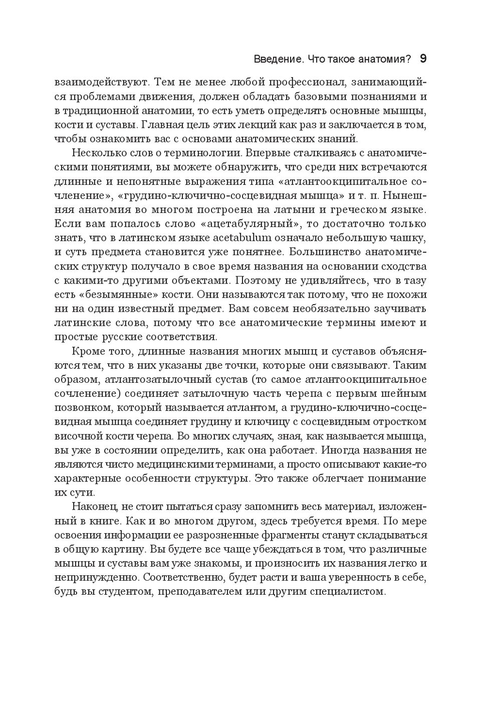 Книга содержит иллюстрации, в подготовке которых использовалась трёхмерная цифровая анатомическая модель человека, и состоит из 31 главы, каждая из которых посвящена определённой части тела. Мышцы, кости и суставы не просто называются. Их функции подробно описываются простым и понятным языком, но вместе с тем в строгом соответствии с принятой анатомической терминологией.
